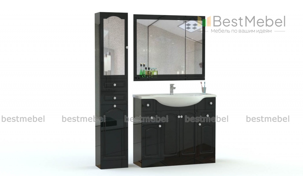 Комплект для ванной Тайти 3 BMS отличается элегантным классическим дизайном и функциональностью. Композиция включает в себя широкую тумбу под раковину с распашными отделениями и четырьмя выдвижными ящиками для хранения уходовых средств, комбинированный с ящиками пенал и большое навесное зеркало с открытой нижней полочкой для мелочей. Благодаря сочетанию глянца и зеркал выполненные в черном цвете предметы не смотрятся громоздко и отличаются влагостойкостью. Купить комплект для ванной Тайти 3 BMS приглашаем в наш интернет-магазин с выбором цвета и фурнитуры по каталогу.