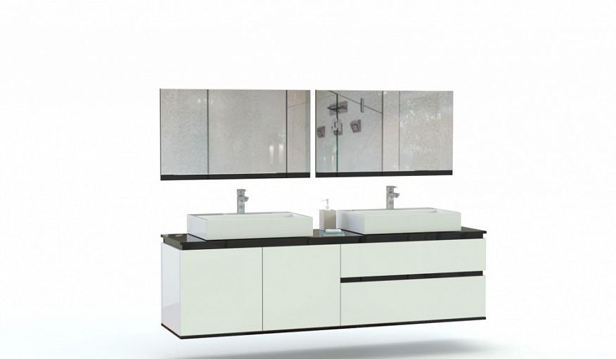 Мебель для ванной Бостон 1 BMS предназначена для меблировки просторных помещений и поможет гармонично вписать в интерьер сразу две раковины. В комплект входят широкая подвесная тумба, оборудованная выдвижными ящиками и двухдверным распашным отделением для хранения уходовых средств, и горизонтальное зеркало с контрастным кантом. Минималистичный дизайн модулей подчеркнет микс черного и белого глянца. Купить мебель для ванной Бостон 1 BMS приглашаем к нам в интернет-магазин.