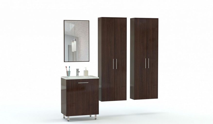 Мебель для ванной комнаты Августин 5 BMS поможет создать элегантный современный интерьер и легко решить проблему хранения большого количества вещей. В комплекте тумба под раковину с высокими опорами, зеркало с подсветкой и подвесные распашные шкафы с глухими фасадами. Насыщенные шоколадные оттенки эффектно сочетаются с хромированной фурнитурой, а влагостойкое покрытие обеспечивает долговечность и эстетичный вид. Купить мебель для ванной комнаты Августин 5 BMS приглашаем к нам в интернет-магазин.