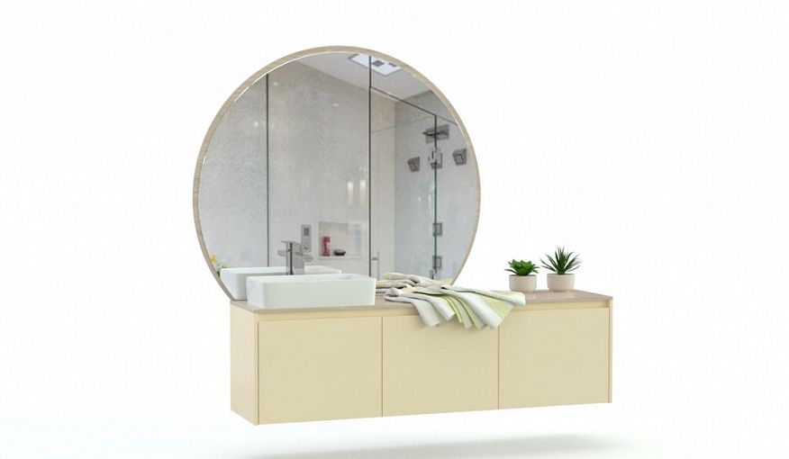 Мебель для ванной комнаты Нео 2 BMS поможет создать стильный монохромный интерьер, отвечающий последним тенденциям. Подвесная композиция для большой ванной комнаты объединила широкую тумбу под раковину-чашу, оборудованную выдвижными отделениями для хранения уходовых средств, и большое круглое зеркало. Выполненная из влагостойких материалов в нейтральной гамме, мебель станет частью комфортного пространства. Купить мебель для ванной комнаты Нео 2 BMS приглашаем в наш интернет-магазин.