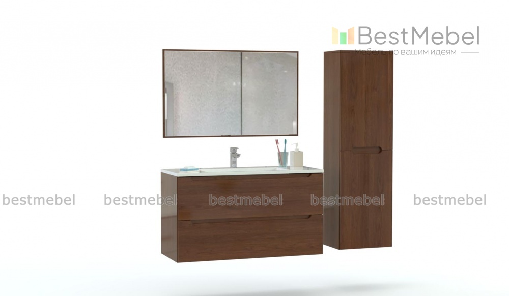 Мебель для ванной комнаты Ясон 2 BMS эффектно сочетает минималистичные формы с цветовым решением в теплых древесных тонах. Подвесная композиция из широкой тумбы под раковину, оборудованной выдвижными ящиками, распашного пенала и большого прямоугольного зеркала станет прекрасным выбором для просторных помещений. Гладкие фасады с фрезерованными ручками просты в уходе и долговечны. Купить мебель для ванной комнаты Ясон 2 BMS приглашаем в наш интернет-магазин.