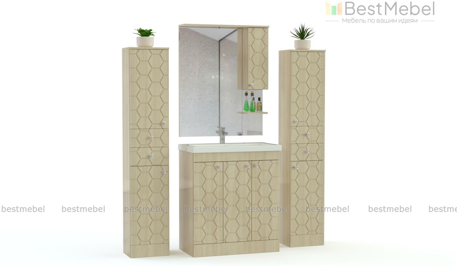 Мебель для ванной Медея 4 BMS с изящным декором фасадов будет особенно эффектно смотреться в просторном помещении и станет настоящим украшением интерьера. В комплект входят трехдверная напольная тумба под раковину, навесное зеркало с подсветкой, шкафчиком и открытой полкой для мелочей, а также два комбинированных с выдвижными ящиками пенала. Выполненные в нежном бежевом цвете, предметы оснащены ручками-кнопками. Купить мебель для ванной Медея 4 BMS вы сможете по лучшей цене в нашем интернет-магазине.