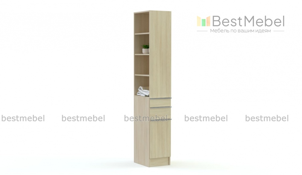Шкаф-пенал в ванную Ристо 1 BMS по достоинству оценят поклонники современных эргономичных интерьеров. Комбинированный шкаф поможет максимально эффективно использовать доступное пространство и разместить под рукой бытовую химию, текстиль и все базовые гигиенические принадлежности. Высокая напольная модель оборудована двумя выдвижными ящиками, глухим распашным отделением и открытыми полками с торцевой стороны. Купить шкаф-пенал в ванную Ристо 1 BMS приглашаем в наш интернет-магазин.