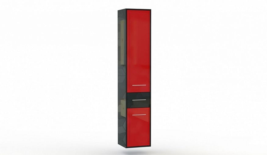 Шкаф подвесной Бамби 3 BMS с корпусом в черном оттенке и красным глянцевым фасадом с фрезеровкой смотрится актуально и гармонично впишется в современные интерьеры. Высокий вместительный пенал станет отличным выбором для просторной ванной комнаты. Для удобного хранения уходовых средств, полотенец, бытовой химии и многого другого предусмотрены два распашных отделения и выдвижной ящик. Купить шкаф подвесной Бамби 3 BMS приглашаем выгодно в наш интернет-магазин.