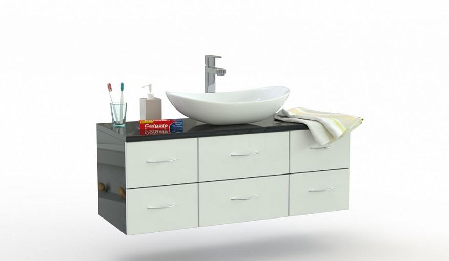 Тумба для ванной Лайт 7 BMS предназначена для меблировки просторных помещений и поможет создать роскошный интерьер в стиле модерн. Широкая подвесная модель под раковину-чашу оборудована просторной столешницей и шестью выдвижными ящиками с хромированными ручками для удобного хранения гигиенических принадлежностей и аксессуаров. Выполненная в черно-белой гамме из влагостойких материалов, тумба сохранит эстетичный вид на протяжении всего срока службы. Купить тумбу для ванной Лайт 7 BMS приглашаем в наш интернет-магазин.