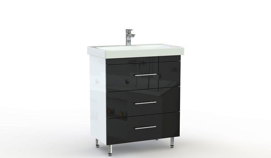 Тумба в ванную Восторг 13 BMS – практичный предмет меблировки и яркий интерьерный акцент. Микс белого и черного с хромированными элементами привлекает внимание и смотрится нестандартно. Пристенная модель под раковину располагается на высоких регулируемых ножках, оборудована тремя выдвижными ящиками и бережно разместит гигиенические принадлежности, уходовые средства и аксессуары. Купить тумбу в ванную Восторг 13 BMS приглашаем в наш интернет-магазин.
