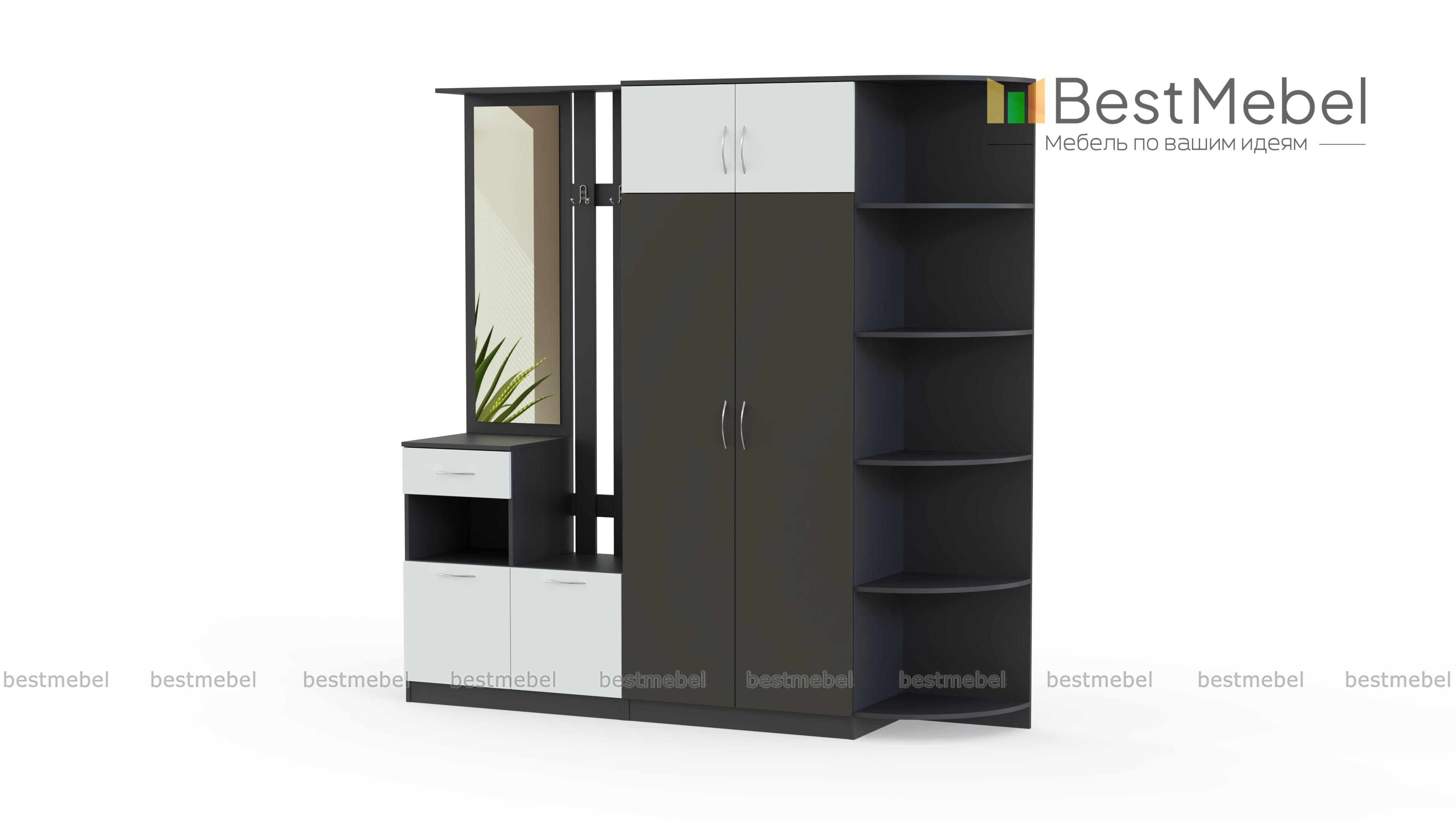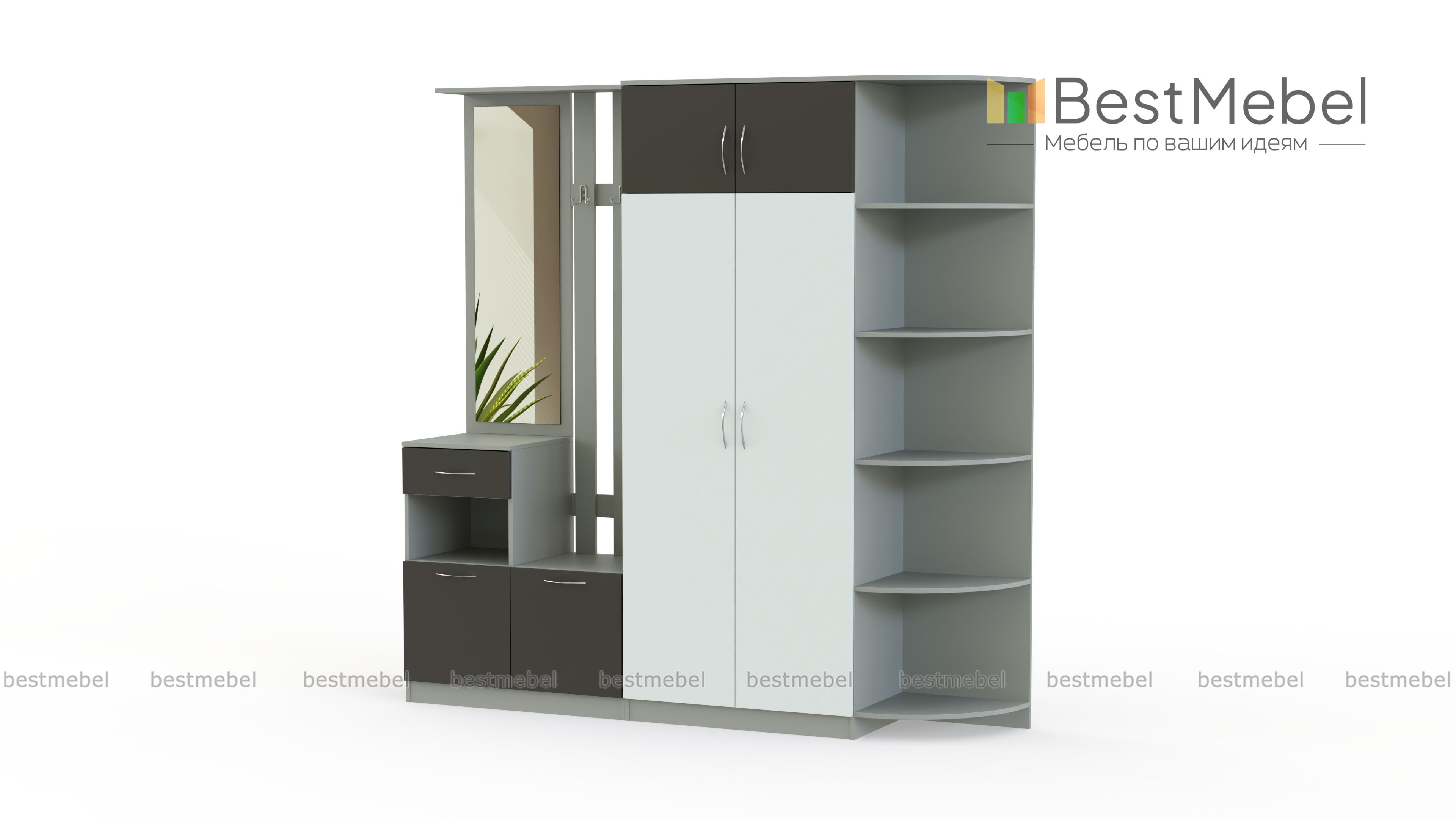 Стенка-прихожая «Идеал 18» BMS – вместительная стенка, которая смотрится легкой за счет гармоничных пропорций и светлых тонов фасадов и корпуса. Для наиболее удобного размещения предметов гардероба, аксессуаров и мелочей стенка оборудована платяным шкафом с антресолями, двумя тумбами, панелью с крючками и зеркалом и угловым элементом. Особенно изящный вид придают комплектуглянцевые фасады тумб и цветные дверцы шкафа. Купить стенку-прихожую «Идеал 18» BMS по лучшей цене вы сможете в нашем интернет-магазине.
