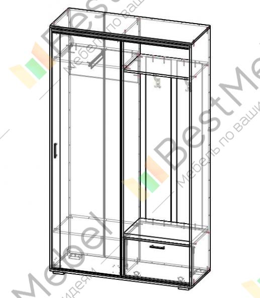 Прихожая Марри 5 BMS – современная и стильная модель, предназначенная для помещений любой площади. Благодаря большой зеркальной двери и контрастному оформлению, мебель визуально увеличивает пространство. Она удобная в использовании, имеет вместительный шкаф с полкой и телескопической штангой, открытую вешалку на два двойных крючка с полкой для головных уборов и обувной тумбой. Поверхность обувницы может служить полочкой для сумок. У нас Вы можете купить прихожую Марри 5 BMS недорого.