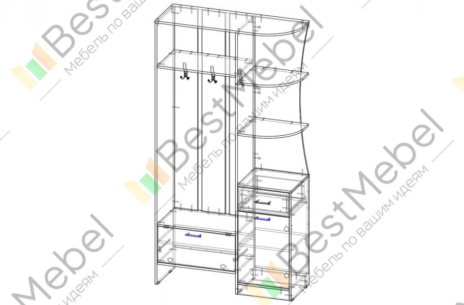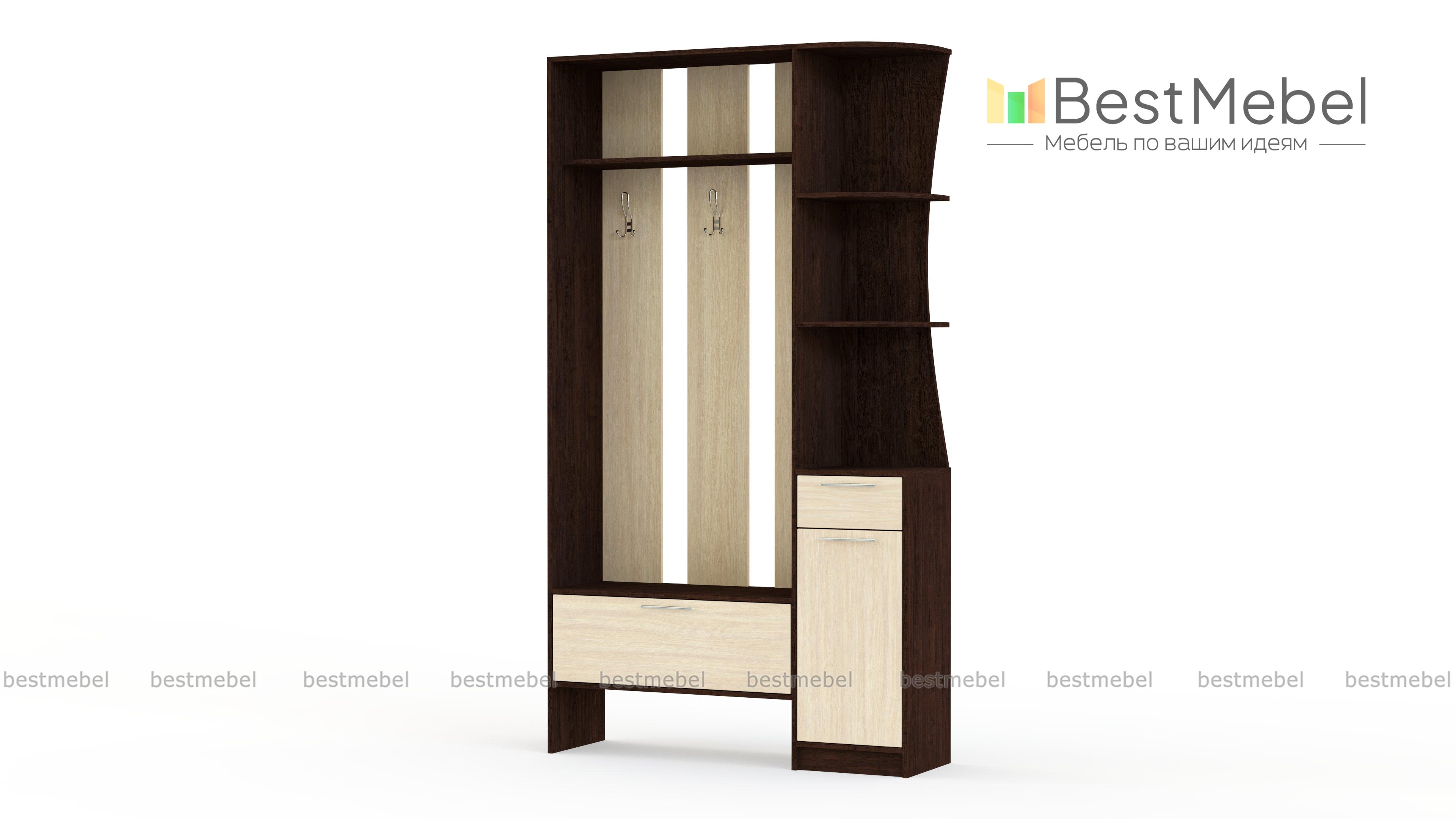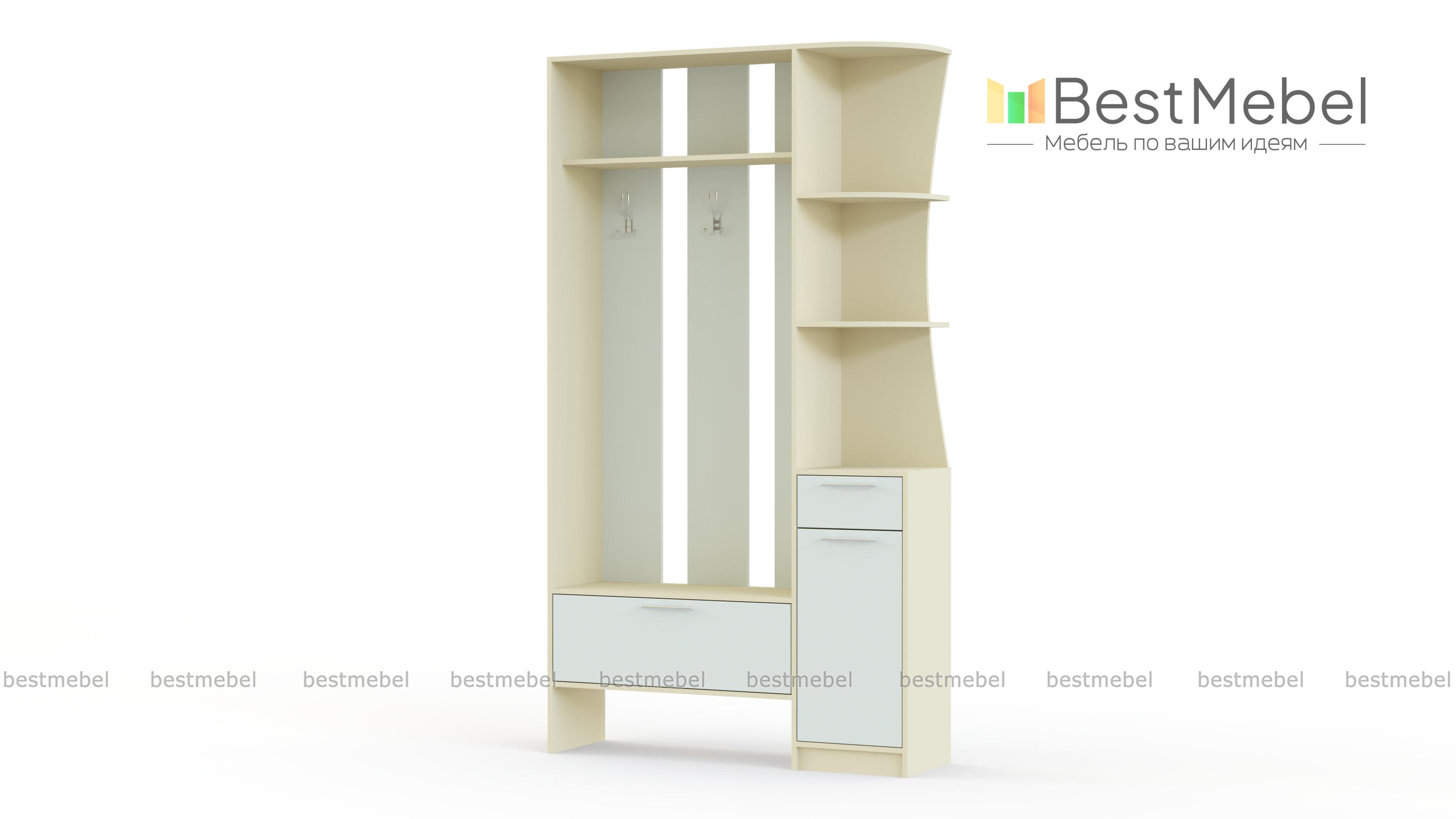 Прихожая Дарина 1.1 BMS – это экономичный вариант для небольших квартир, который выгодно использует полезную площадь и поможет оборудовать входную зону всем самым необходимым. Элегантная современная модель в контрастных тонах оборудована открытой вешалкой с крючками и полкой под головные уборы, обувницей с ящиком для уходовых средств, тумбой и торцевыми полочками на скругленной задней панели. Купить прихожую Дарина 1.1 BMS недорого приглашаем на сайт нашего интернет-магазина.