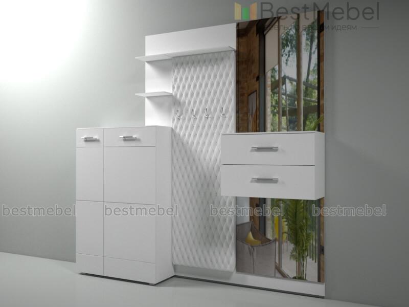Прихожая Премиум 1.35 BMS станет выбором владельцев интерьеров в стиле минимализм и хай-тек. Эффектная конструкция с зеркальными и глянцевыми поверхностями отличается лаконичным дизайном и функциональностью. В единую композицию объединены высокий комод с горизонтальной фрезеровкой и широкая панель с открытой вешалкой, полками для головных уборов и мелочей и выдвижными ящиками. Уютный вид модели придает обивка в экокоже с традиционной каретной стяжкой. Купить прихожую Премиум 1.35 BMS вы сможете в нашем интернет-магазине.
