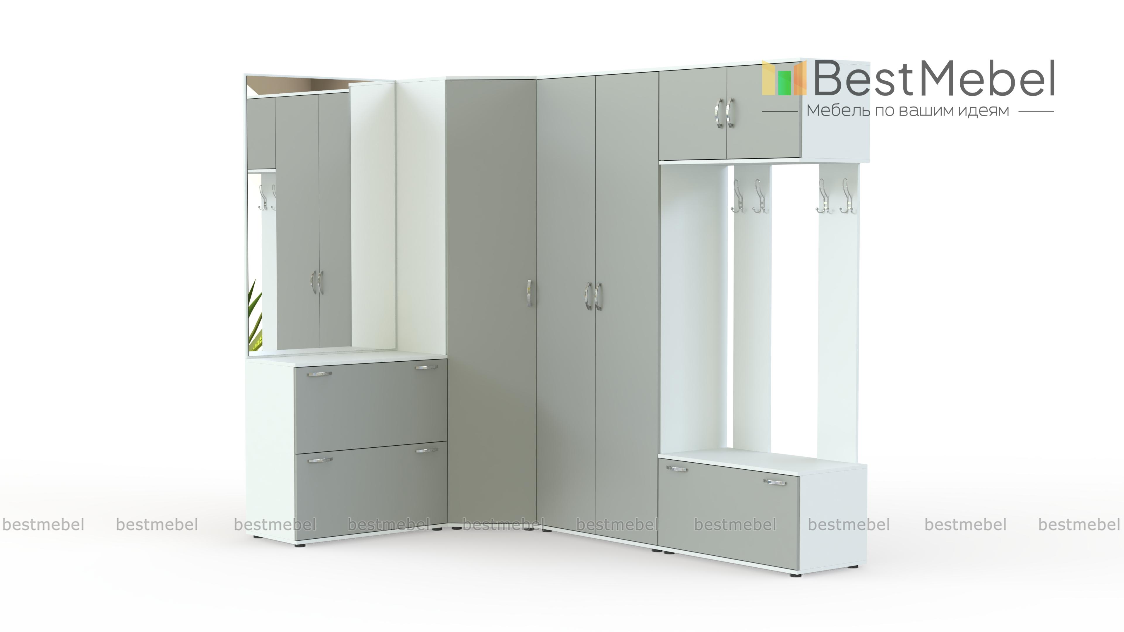 Прихожая Севара 13 BMS привлекает внимание оригинальным современным дизайном и продуманной комбинацией модулей. Угловая композиция включает в себя распашные шкафы для одежды с полками и штангой, секцию с зеркалом и тумбой и открытую вешалку с распашной антресолью и обувницей. Эффектные матовые фасады модели износостойки, просты в уходе и надолго сохранят эстетичный вид. Купить прихожую Севара 13 BMS, которая поможет разместить большое количество вещей и украсит домашний интерьер, приглашаем в наш интернет-магазин.