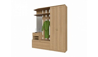 Прихожая Вояж-2 BMS с рамочной отделкой фасадов дополнит помещения, оформленные в классическом стиле. Для хранения повседневных вещей предусмотрены двухдверный распашной шкаф, обувница, открытая вешалка и верхние полки, а комфортный уход за собой обеспечит зеркало с тумбой для мелочей. Древесные тона создают атмосферу уюта и гармонично сочетаются с любым декором. Купить прихожую Вояж-2 BMS приглашаем в наш интернет-магазин с возможностью выбора цвета, размеров и фурнитуры.