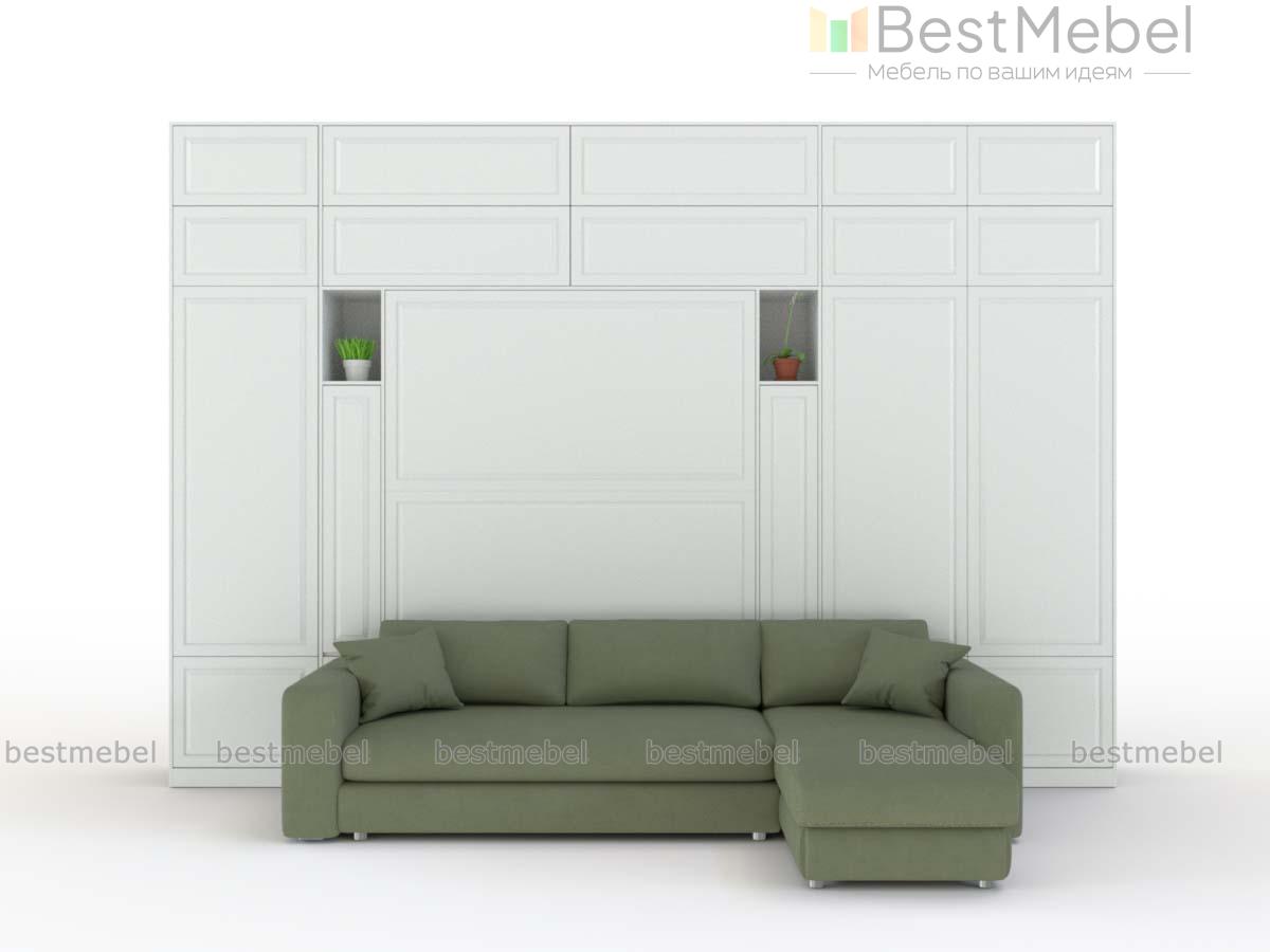 Шкаф-кровать с диваном Классика BMS – прекрасный выбор для просторной гостиной или студии в духе современной классики. Элегантная композиция объединила вместительный шкаф с антресолями, открытыми и глухими отделениями, угловой роскошный диван и скрытую в нише за откидной центральной частью двуспальную кровать. Светлые рамочные фасады эффектно сочетаются с мягкой обивкой и каретной стяжкой спинки кровати, а атмосферный вид интерьеру придаст встроенная подсветка. Купить шкаф-кровать с диваном Классика BMS приглашаем в наш интернет-магазин.