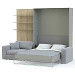 Шкаф-кровать Нью 6 BMS поможет оборудовать стильную и эргономичную зону отдыха. Эффектный минималистичный комплект станет практичным выбором для гостиных и студий, освобождая жилое пространство от лишней мебели. Разместиться всей семье или большой компании позволит широкий диван с формованными съемными подушками спинки, для книг и интерьерных украшений предусмотрены открытые полки, а спальное место легко получить с помощью вертикального откидного механизма. Купить шкаф-кровать Нью 6 BMS приглашаем в наш интернет-магазин.
