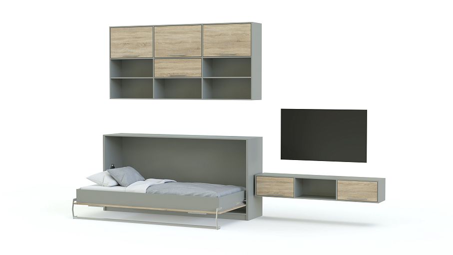 Шкаф-кровать трансформер Детская 1 BMS поможет сэкономить пространство и обустроить комфортную зону отдыха в небольших и узких комнатах. Композиция включает в себя шкаф-трансформер, за горизонтальной откидной дверцей которого скрывается полноценное спальное место, и навесную секцию с глухими и открытыми полками для книг и игрушек. Выполненный в нейтральной гамме, комплект легко впишется в современные интерьеры и создаст уютную атмосферу. Купить шкаф-кровать трансформер Детская 1 BMS по доступной цене приглашаем к нам в интернет-магазин.