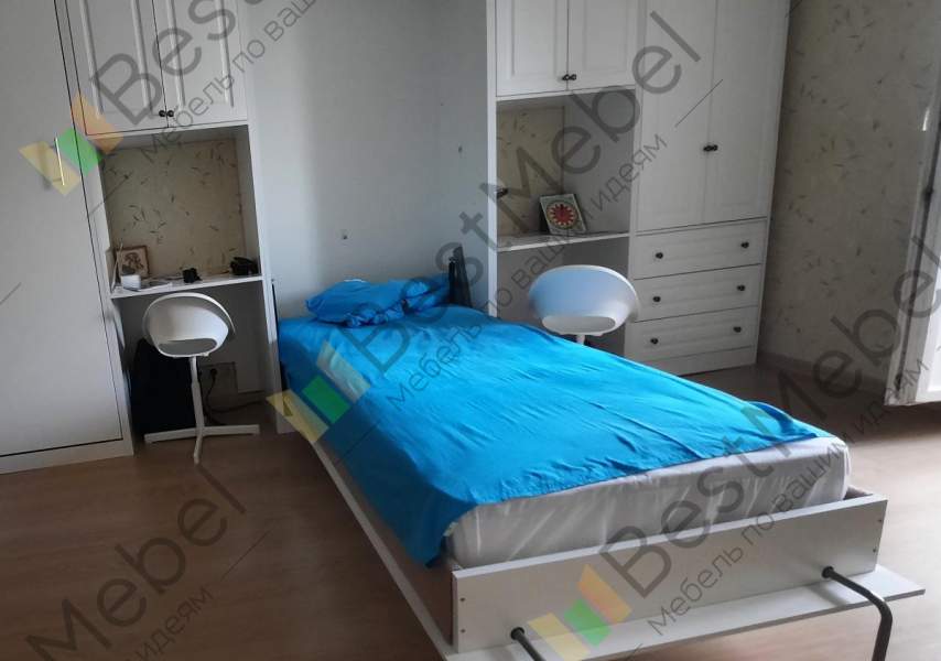 Очень понравилась эта кровать трансформер, заказала с фрезеровкой под классику, размеры скорректировали на 5-ти метровую стену, дополнив шкафом и вторым раб. местом. Фурнитура хорошая. Эскиз отослали, утвердили и приступили к работе. За качество снила звезду, за то что отказались делать фрезировку на панелях кроватей (Вы можете это делать, собирать надо аккуратно, т.к. там ручки проходят). Доставка нормальная, сборка супер (попросила, чтоб фиксаторы не ставили - у моих детей сил маловато с ними открывать). Ремни нам не требуются - у нас ничего не улетает (спрятаны под матрасами).Спасибо магазину и производству.Банк отказал в рассрочке научному сотруднику, но и без него обошлась.