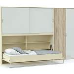 Шкаф-кровать трансформер Фазан 55 BMS прекрасно подходит для меблировки современной подростковой комнаты. Днем спальное место можно сложить и освободить пространство для учебы, творческих и спортивных занятий. Практичный и яркий комплекс включает в себя распашной платяной шкаф, раздвижную секцию с полками и штангой, а также горизонтальный модуль с откидной кроватью, столешницей и открытыми книжными полками. Купить шкаф-кровать трансформер Фазан 55 BMS приглашаем в наш интернет-магазин с учетом оптимальных параметров.
