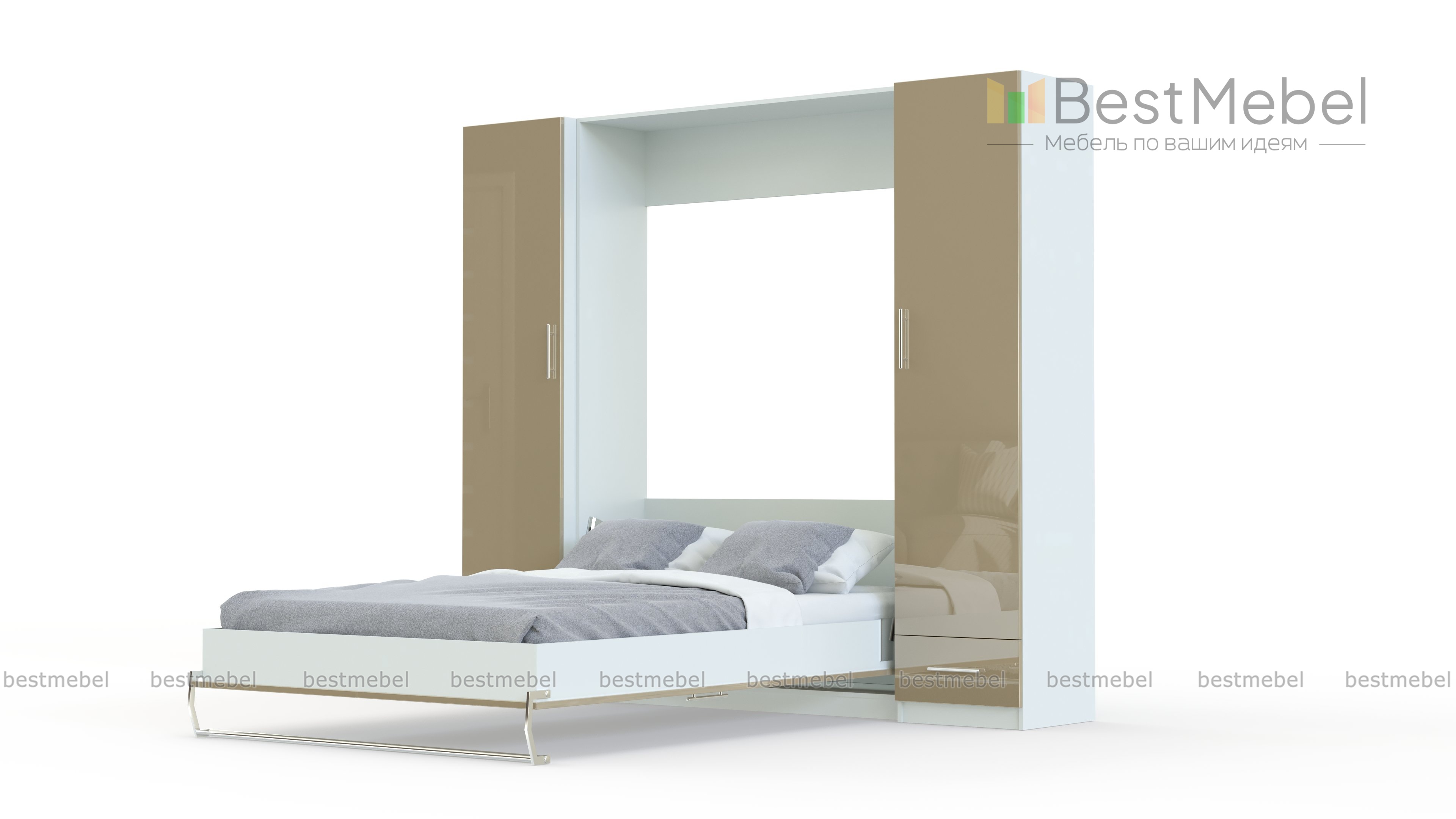 Шкаф-кровать трансформер Глянец 2 BMS – это удобная система хранения и комфортная зона отдыха. Лаконичная стенка с бежевыми глянцевыми фасадами оборудована боковыми пеналами с выдвижными ящиками для белья и одежды и замаскированной под двухдверный шкаф откидной кроватью. Вы сможете компактно разместить вещи, а при необходимости получить полноценное спальное место. Гарантией долговечности и простоты в эксплуатации станет надежный вертикальный механизм. Купить шкаф-кровать трансформер Глянец 2 BMS приглашаем в наш интернет-магазин.
