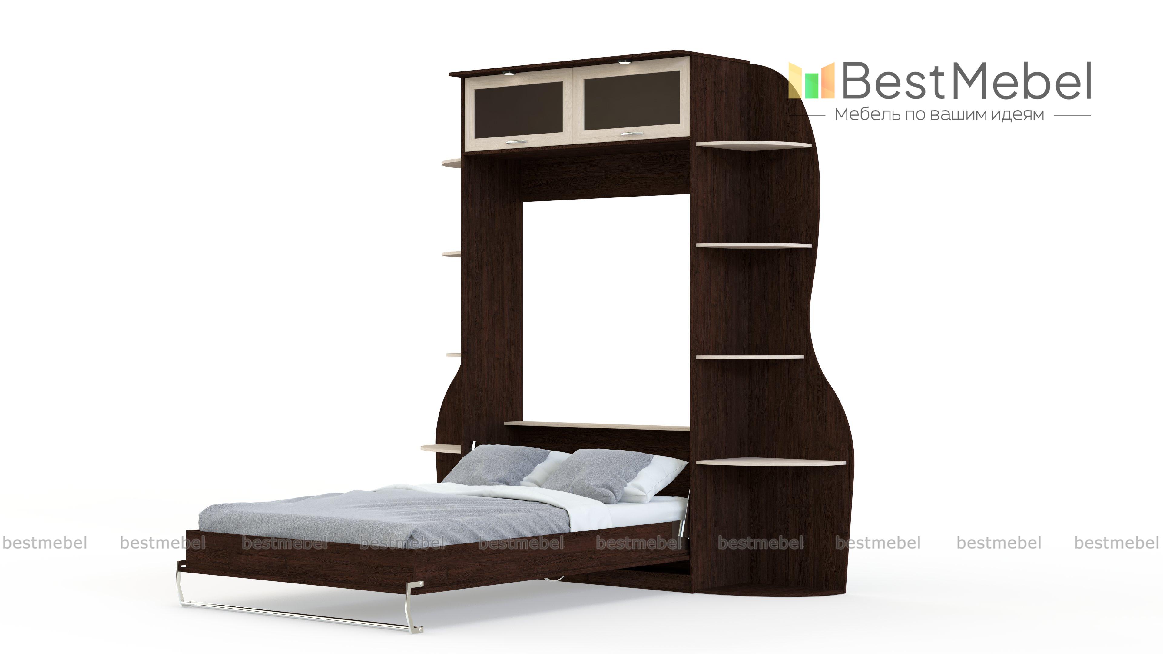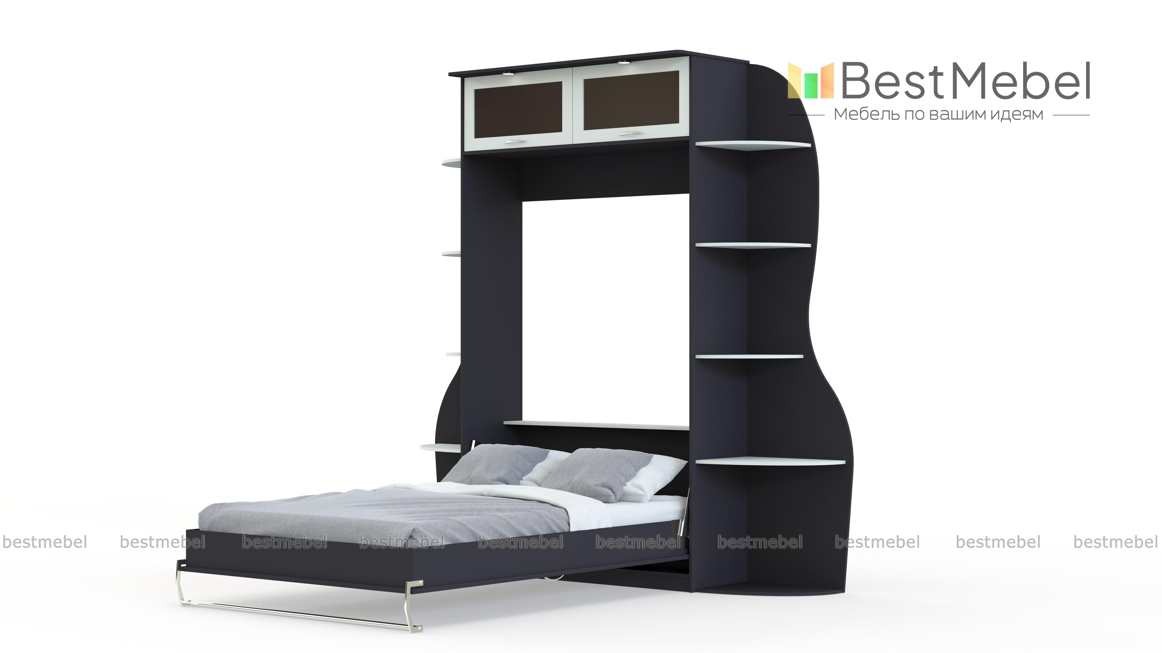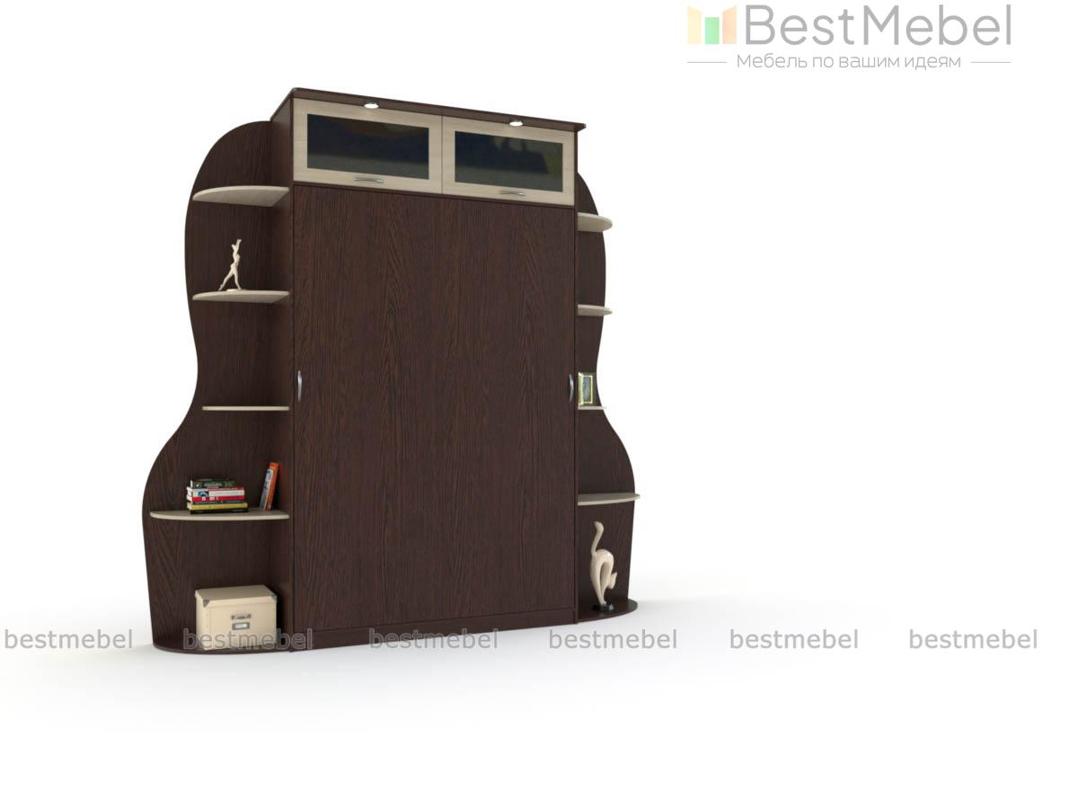 Шкаф-кровать трансформер Марио 41 BMS – это изящная современная мини-стенка, которая гармонично дополнит интерьер гостиной, а при необходимости легко превратит ее в уютную спальню. Модель оборудована антресолью с застекленными дверцами, открытыми торцевыми полками на фигурно вырезанных задних панелях и модулем с откидной кроватью, замаскированной под дверцы. При помощи простого и надежного вертикального механизма спальное место опускается вниз. Купить шкаф-кровать трансформер Марио 41 BMS выгодно приглашаем к нам в интернет-магазин.