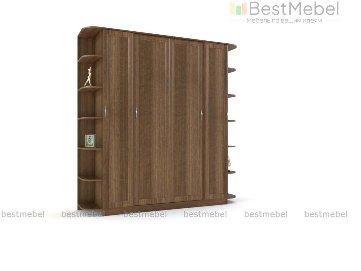 Шкаф-кровать трансформер Райм BMS внешне ничем не отличается от привычного четырехдверного шкафа, а при необходимости легко превращается в полноценное спальное место. Практичная композиция 2 в 1 оборудована боковыми отделениями для белья и одежды, торцевыми стеллажами и центральным модулем с откидной кроватью. Выполненный в древесных тонах, шкаф гармонично смотрится и в классических, и в современных интерьерах. Купить шкаф-кровать трансформер Райм BMS по доступной цене приглашаем к нам в интернет-магазин.