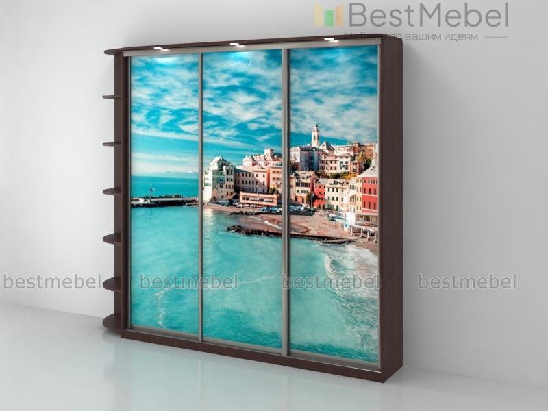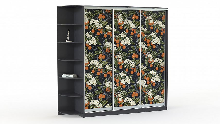 Шкаф-купе Оротава № 38 BMS украшен сочным фруктовым принтом на контрастном фоне. Для удобного размещения предметов гардероба, бытовых мелочей, книг и декора комбинированная модель оборудована не только трехдверным отделением-купе, но и плавно закругленным стеллажом. Встроенные в козырек светильники делают пользование комфортным, а атмосферу в комнате - камерной и уютной. Купить шкаф-купе Оротава № 38 BMS, изготовленный по вашим размерам, вы сможете в нашем интернет-магазине.