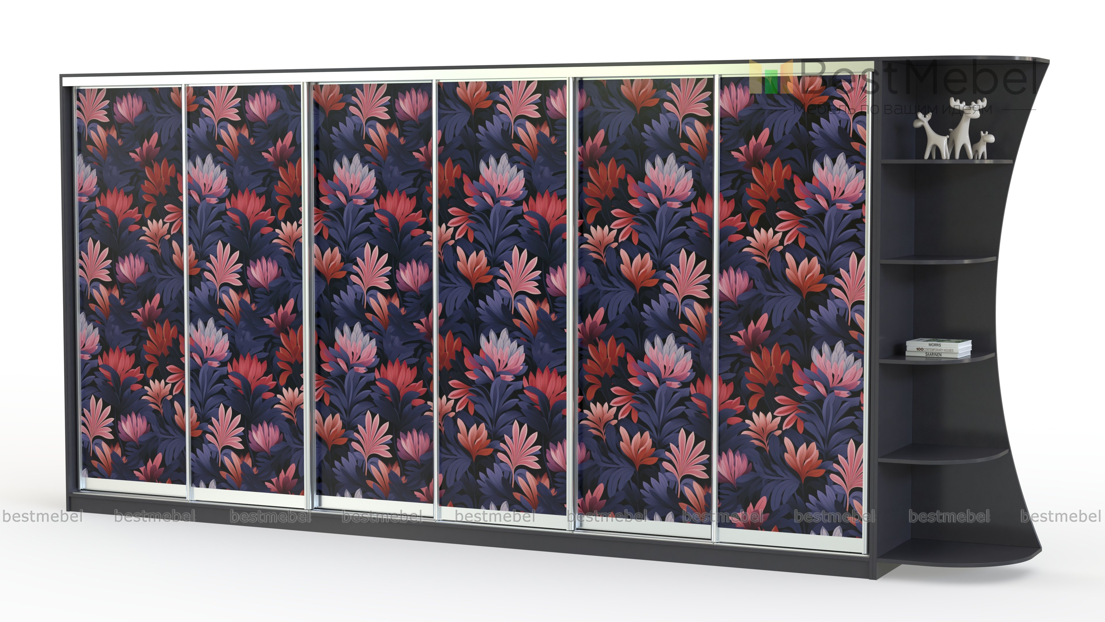 Шкаф-купе Анемон 12 BMS станет выбором тех, кто ценит яркие современные дизайны и функциональность. Комбинированная модель объединила шестидверное отделение-купе и эффектно вырезанный торцевой стеллаж с радиусными полками. Вы сможете легко разместить в одном месте большое количество вещей, а в центральный предмет интерьера шкаф превращает цветочная фотопечать в нежных фиолетовых тонах. Купить шкаф-купе Анемон 12 BMS для меблировки спальни или гостиной приглашаем к нам в интернет-магазин.