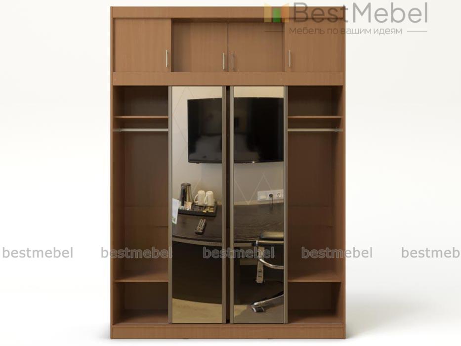 Шкаф-купе Берта BMS - вместительная модель классического дизайна, востребованная в любом помещении дома. Благодаря комбинации распашных и раздвижных отделений с тремя вместительными ящиками и антресолью шкаф позволяет компактно разместить вещи на вешалках, мелкий трикотаж и объемные постельные принадлежности. Зеркальные фасады створок-купе зрительно увеличат размеры небольшой комнаты. Купить шкаф-купе Берта BMS с изготовлением по индивидуальным размерам вы сможете в нашем интернет-магазине.