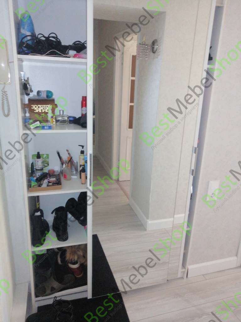 Отличный шкаф. Искали везде такой глубины и нашли. Двери тяжёлые, не хлюпкие, единственное что мы сами добавили руки, потому что ребёнок пачкает зеркала. И для такого вроде узкого шкафа, места в нем придостаточно.