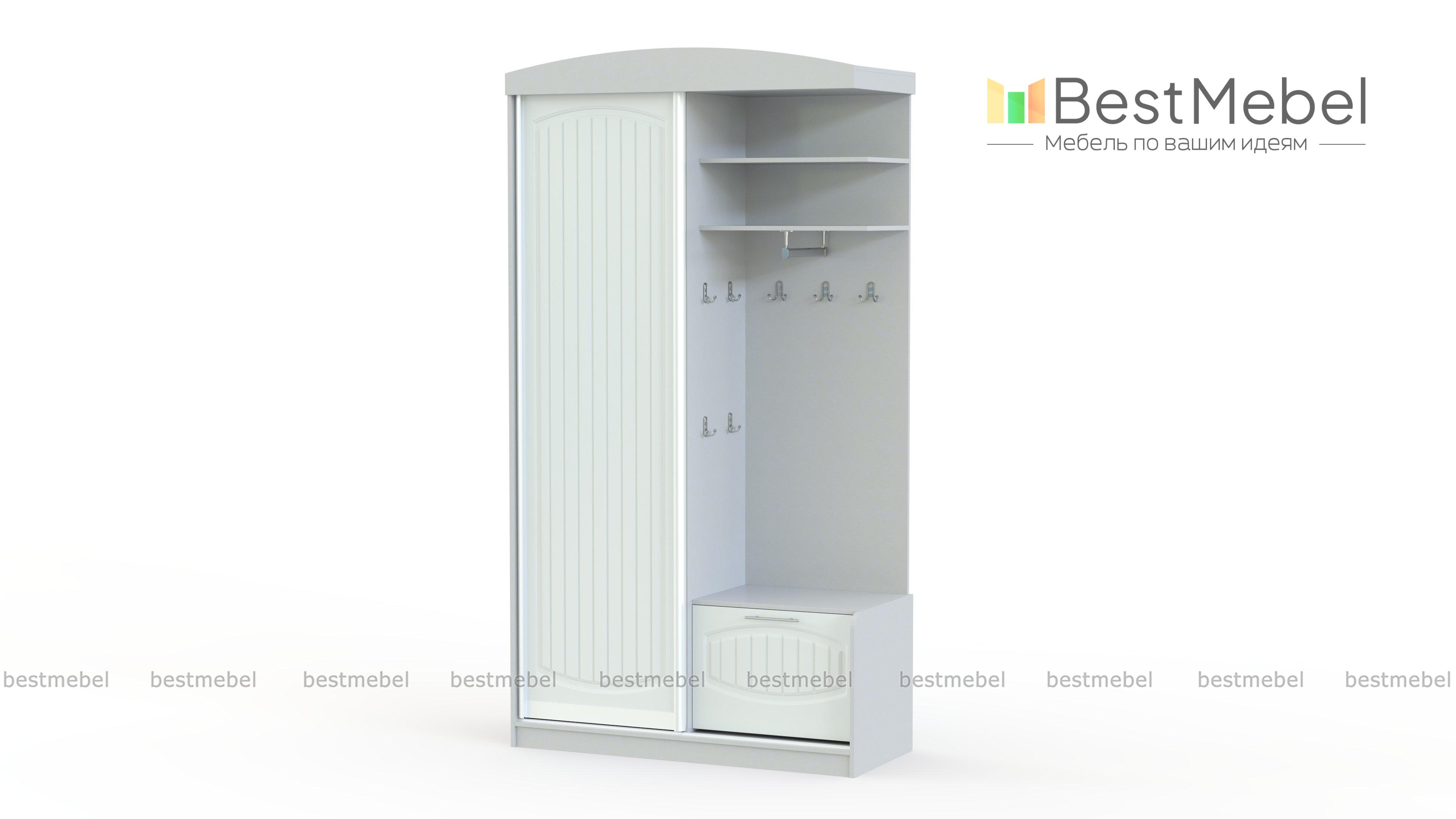 Шкаф-купе ЭТ-3 BMS дополнен открытой вешалкой со штангой и двумя рядами крючков, двумя верхними полками и отделением для обуви. Конструкция шкафа позволяет вам эстетично обустроить входную зону, разместив сезонную одежду, обувь и аксессуары. В классическом стиле оформлены полукруглый карниз, фрезерованные светлые фасады раздвижного отделения и обувницы. Купить шкаф-купе ЭТ-3 BMS с изготовлением по индивидуальным размерам вы сможете на сайте нашего интернет-магазина.