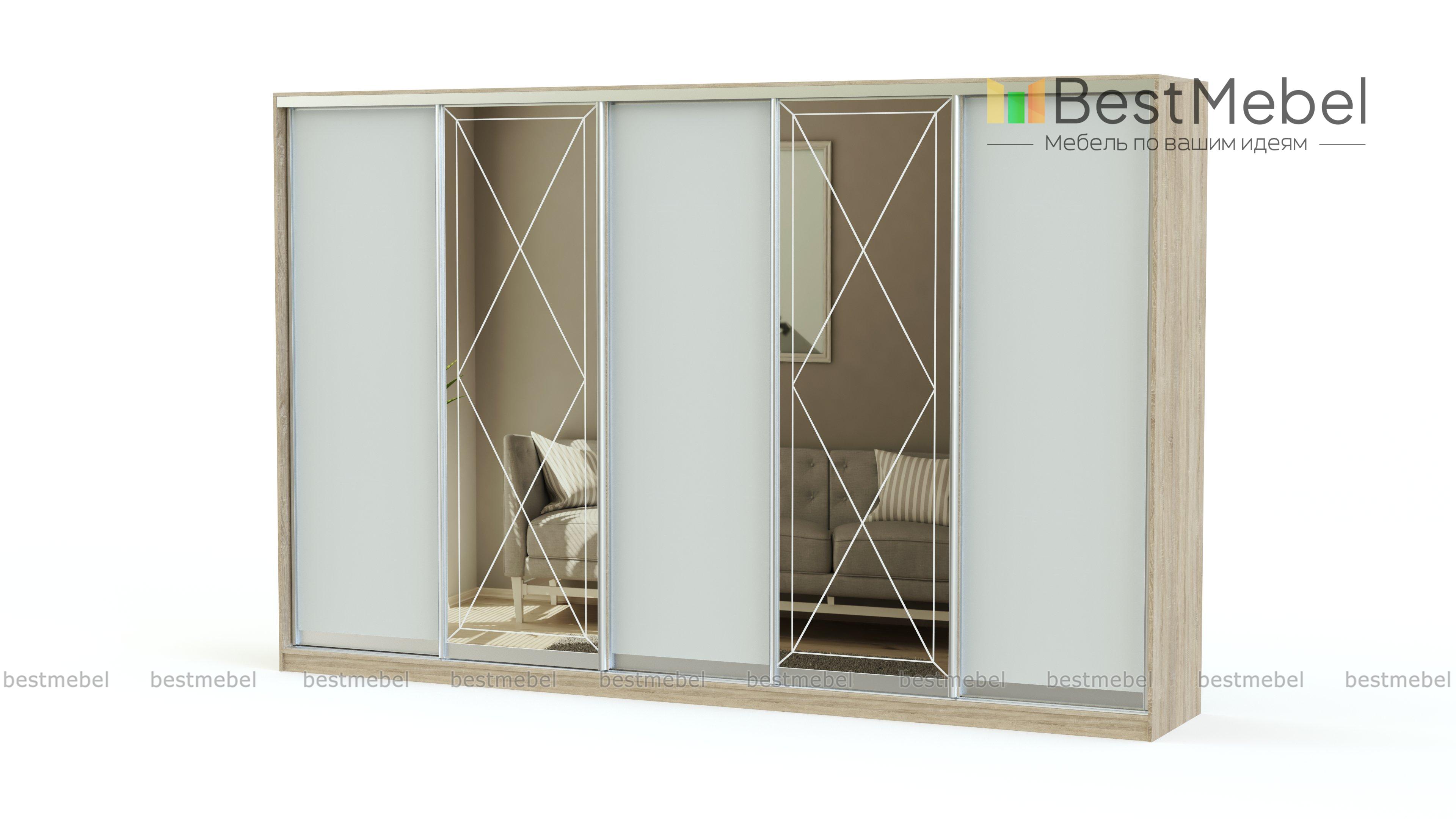 Стильный и вместительный шкаф-купе, который можно установить в прихожей, гостиной или разделить им пространство на зоны в небольшой квартире. Дизайн изделия можно подобрать по своему усмотрению. Это может быть ДСП с фактурой дерева, его сочетание с зеркалами или полностью зеркальная поверхность. Конструкция шкафа имеет вместительные полки и отделения со штангами для одежды на вешалках. При заказе на сайте можно выбрать цвет изделия и профиля из предложенных вариантов. Качественная алюминиевая профильная система обеспечивает легкое скольжение для бесшумного открывания. Организуйте аккуратное и компактное хранение вещей, купив шкаф-купе по доступной цене на нашем сайте.