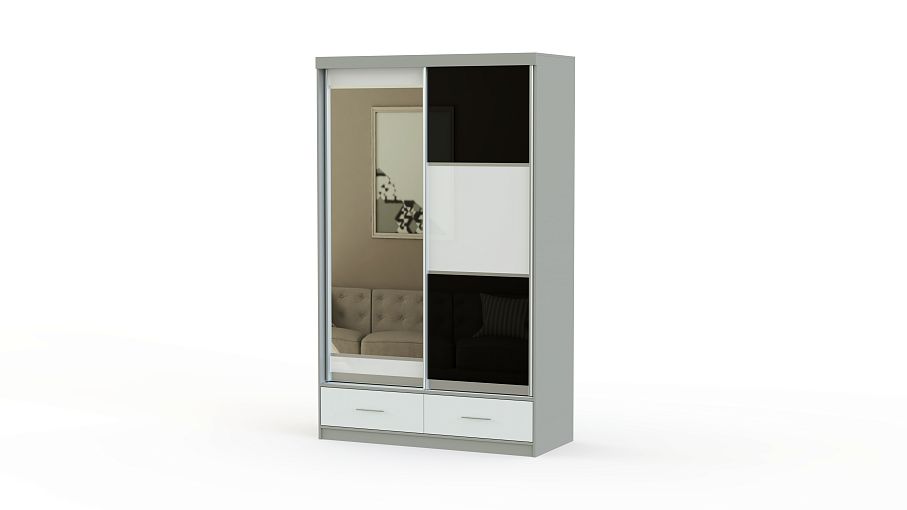 Внутреннее наполнение шкафа-купе – это 5 просторных ниш для Вашей одежды и обуви, 2 выдвижных ящика для мелочей, а также большое отделение со штангой для вешалок. Мы предлагаем варианты цветового оформления, доступные цены и услугу доставки, удобным для Вас способом.