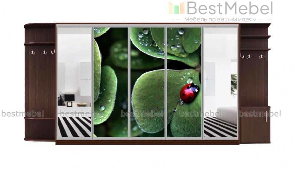Шкаф-купе Каролина 3 BMS акцентирует пространство ярким фасадным принтом. Три центральные створки украшены фотопечатью, а две боковые - полностью зеркальные, зрительно облегчают конструкцию. Помимо основного гардеробного отделения с раздвижными дверцами шкаф оборудован открытыми торцевыми секциями, оснащенными крючками, полками и распашной тумбой. Купить шкаф-купе Каролина 3 BMS для меблировки входной зоны вы сможете на сайте нашего интернет-магазина.