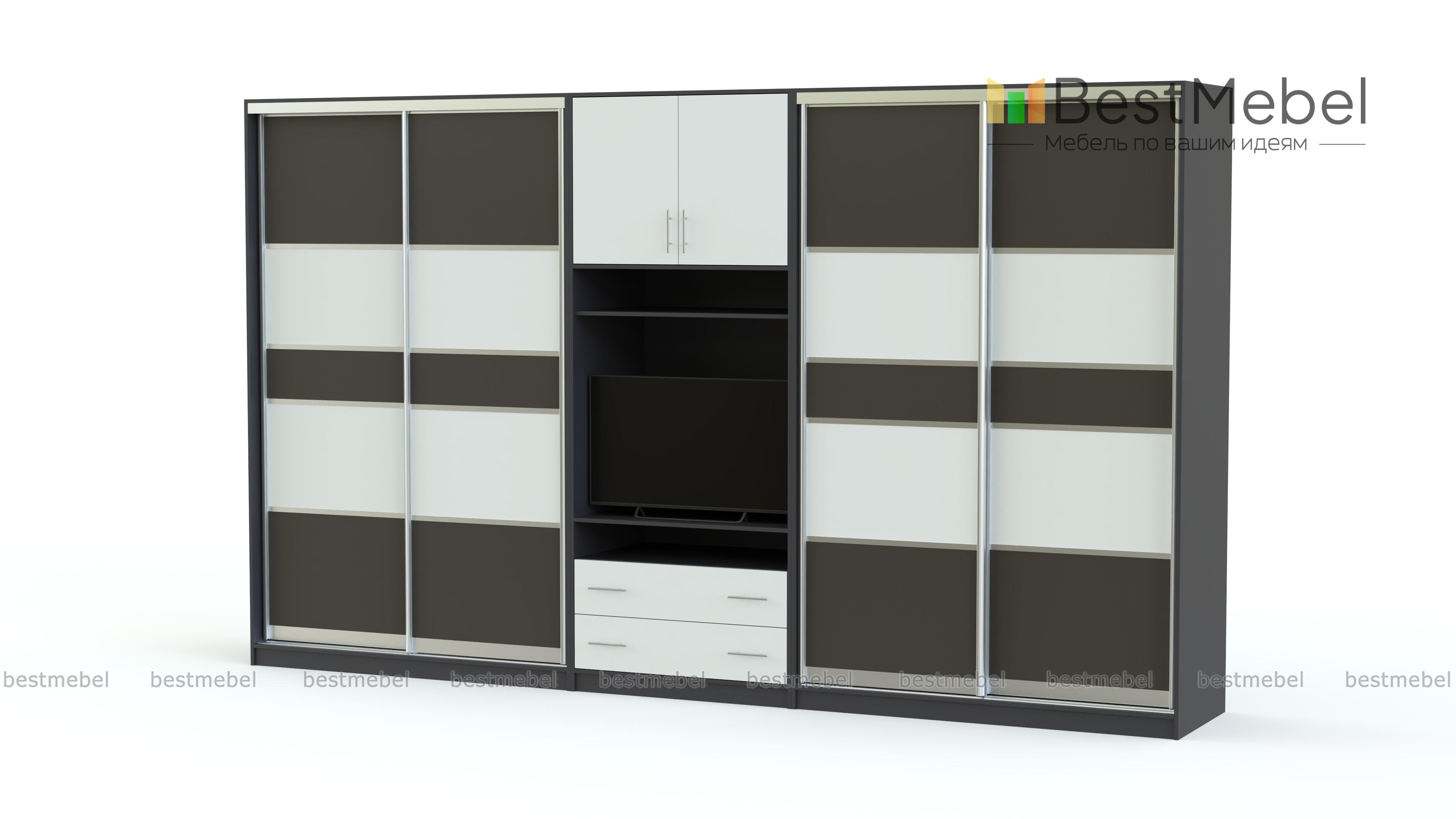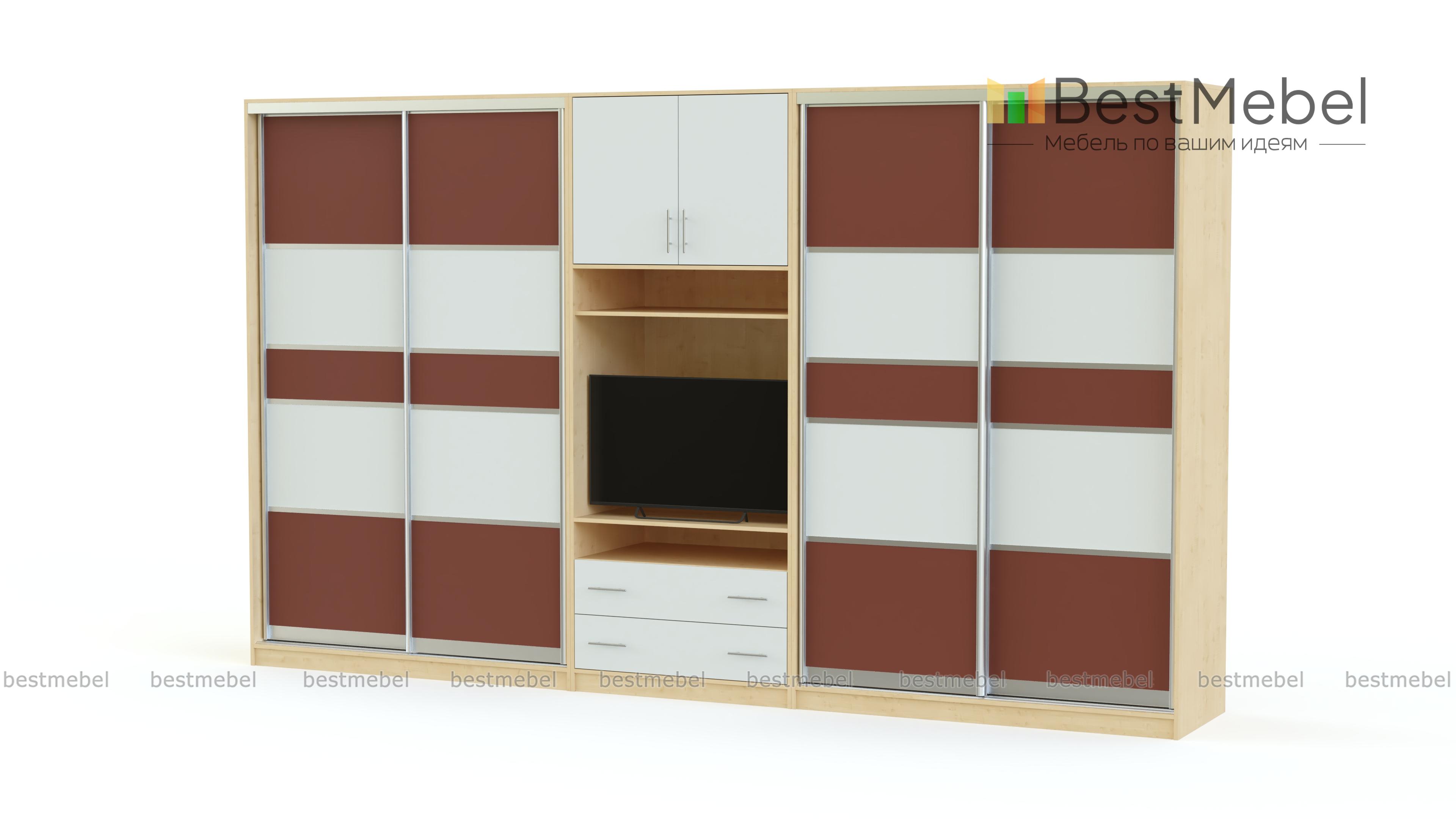 Шкаф-купе Круиз-1 BMS – это многофункциональная конструкция, которая станет альтернативой привычным стенкам в интерьере современной гостиной. Практичная модель скроет недостатки планировки и эффективно использует доступное пространство. Композиция включает в себя двухдверные шкафы-купе, объединенные в центральной части тумбой под ТВ, нишами и распашной антресолью. Цветные фасады в МДФ отличаются износостойкостью и простотой ухода, а раздвижная конструкция сэкономит полезную площадь. Купить шкаф-купе Круиз-1 BMS вы всегда сможете в нашем интернет-магазине.