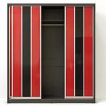 Шкаф-купе Лика BMS с тремя дверями имеет стильный презентабельный дизайн, который преобразит любое помещение. Фасад шкафа оформлен вертикальными полосами закаленного стекла черного и красного цветов. Внутри шкаф обустроен вместительными полками и хромированной штангой для вешалок. По желанию могут быть установлены выдвижные ящики на телескопических направляющих, а также дополнительные полки.
