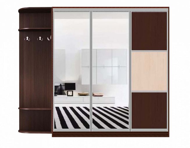 Шкаф-купе Мальва 25 BMS сочетает в себе лаконичный современный дизайн, функциональность и доступную цену. Трехдверный шкаф с практичным дополнением в виде открытой вешалки с радиусными полками позволяет разместить большое количество вещей и оптимален для меблировки входной зоны. В оформлении фасада скомбинированы контрастные древесные тона и визуально расширяющие границы комнаты зеркала. Купить Шкаф-купе Мальва 25 BMS приглашаем в наш интернет-магазин.
