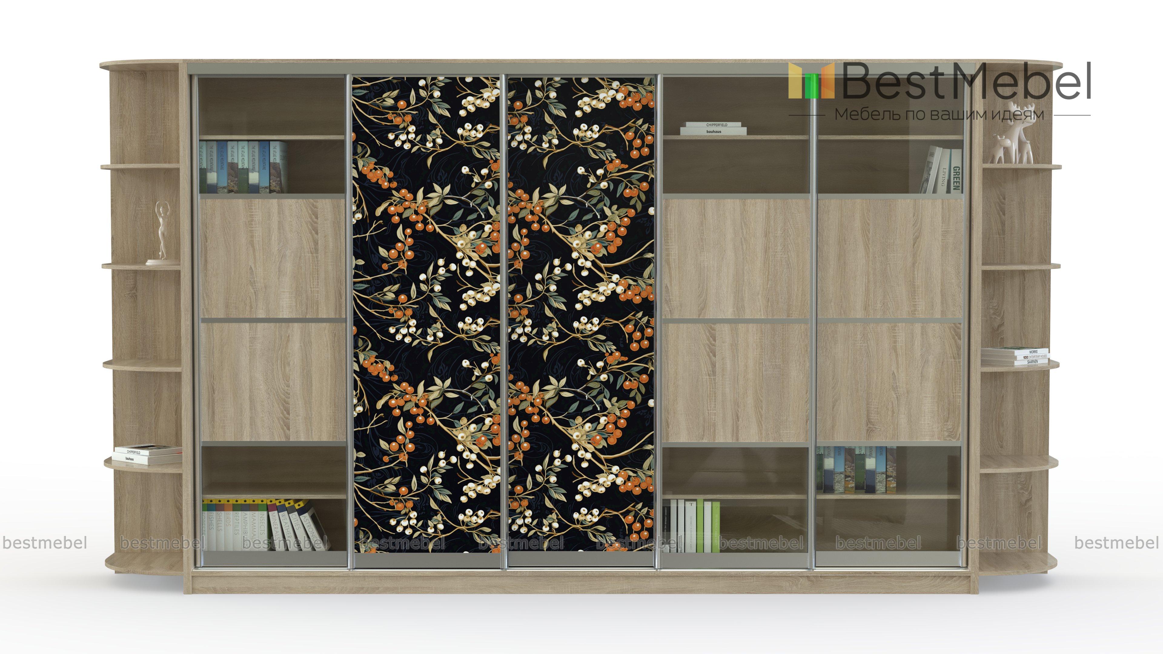 Шкаф-купе Мираж 15 BMS заменит сразу несколько предметов меблировки. Многофункциональная модель объединила платяной шкаф-купе, застекленные книжные секции и скругленные торцевые стеллажи, предназначенные для размещения декора и необходимых под рукой вещей. Древесные оттенки в отделке фасада скомбинированы с эффектным растительным принтом. Купить шкаф-купе Мираж 15 BMS вы сможете в нашем интернет-магазине, подобрав оптимальные размеры и цветовое решение.