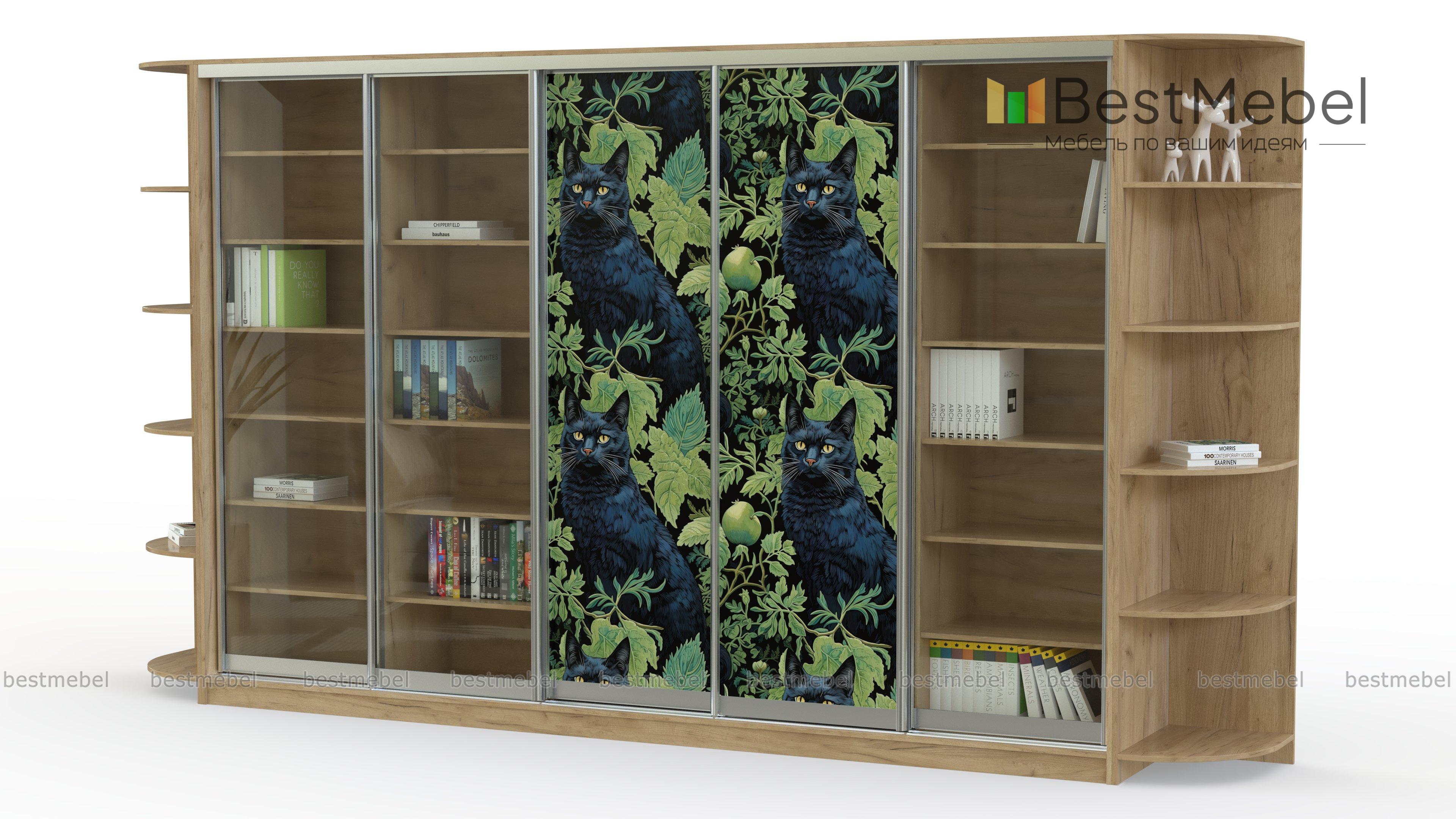 Шкаф-купе Мираж 16 BMS оборудован двухдверным гардеробным отделением и просторными книжными полками. Стеклянные дверцы обеспечат отличный обзор и защиту от пыли книгам и рабочим материалам, а оргинальный фасадный рисунок придаст модели эксклюзивный вид. Завершают композицию два торцевых стеллажа, на полках которых выигрышно смотрятся модные статуэтки и прочие приятные мелочи. Купить шкаф-купе Мираж 16 BMS вы сможете в нашем интернет-магазине, подобрав цвет и размеры.