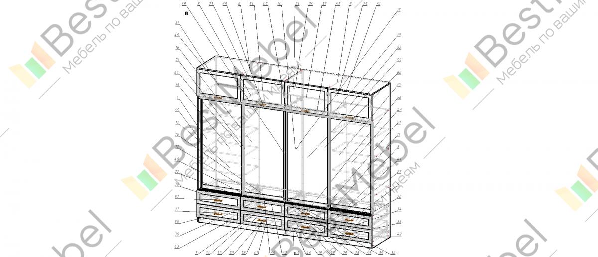 Шкаф вместительный, красивый. Собирали самостоятельно около недели, работы было много. Все отверстия были разделены точно. Немного пришлось подпиливать направляющие для системы купе, так как ширина шкафа всборе оказалась чуть меньше длины направляющих. Дверцы верхних полок на газлифтах, так что убирать и доставать вещи можно только со стремянки. Из недостатков: на панелях имеются сколы, пришлось подкрашивать; направляющие под систему купе изначально не привезли, ждали довоз в течении 10 дней; по низу нет регулировки, обычные пятки; тяжело дозвониться, но всегда перезванивают; слепая схема изделия, нет инструкции по сборки. Схемы изделия с номерами позиций выполненные с разных ракурсов можно запросить в гарантийном отделе, скинут по электронной почте.