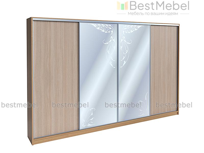 Шкаф-купе Оскар 17 BMS позволяет разместить семейный гардероб и объемные постельные принадлежности, домашний текстиль и всевозможные бытовые вещи. Габаритная четырехдверная конструкция занимает все пространство от стены до стены, но не выглядит громоздко. Боковые створки из ламинированной плиты белого оттенка скомбинированы с двумя зеркальными, украшенными изящным пескоструйным узором. Купить шкаф-купе Оскар 17 BMS и рационально организовать хранение вам поможет наш интернет-магазин.
