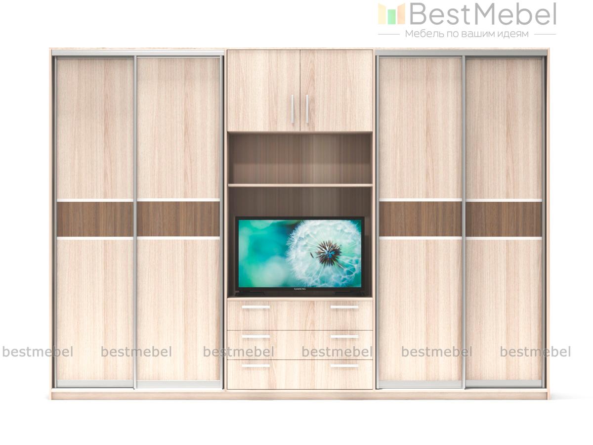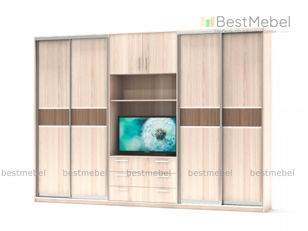 Шкаф-купе РМ BMS – крупногабаритная модель, которая поможет максимально выгодно использовать доступное пространство спальни или гостиной. Комбинированный шкаф объединил функции стенки и классического купе, включая в себя два отделения с раздвижными дверцами и центральную секцию из тумбы, ниши, открытой полки и распашной антресоли. Нейтральная серо-бежевая древесная гамма легко впишется в современные интерьеры. Купить шкаф-купе РМ BMS, подобрав оптимальные параметры, приглашаем в наш интернет-магазин.