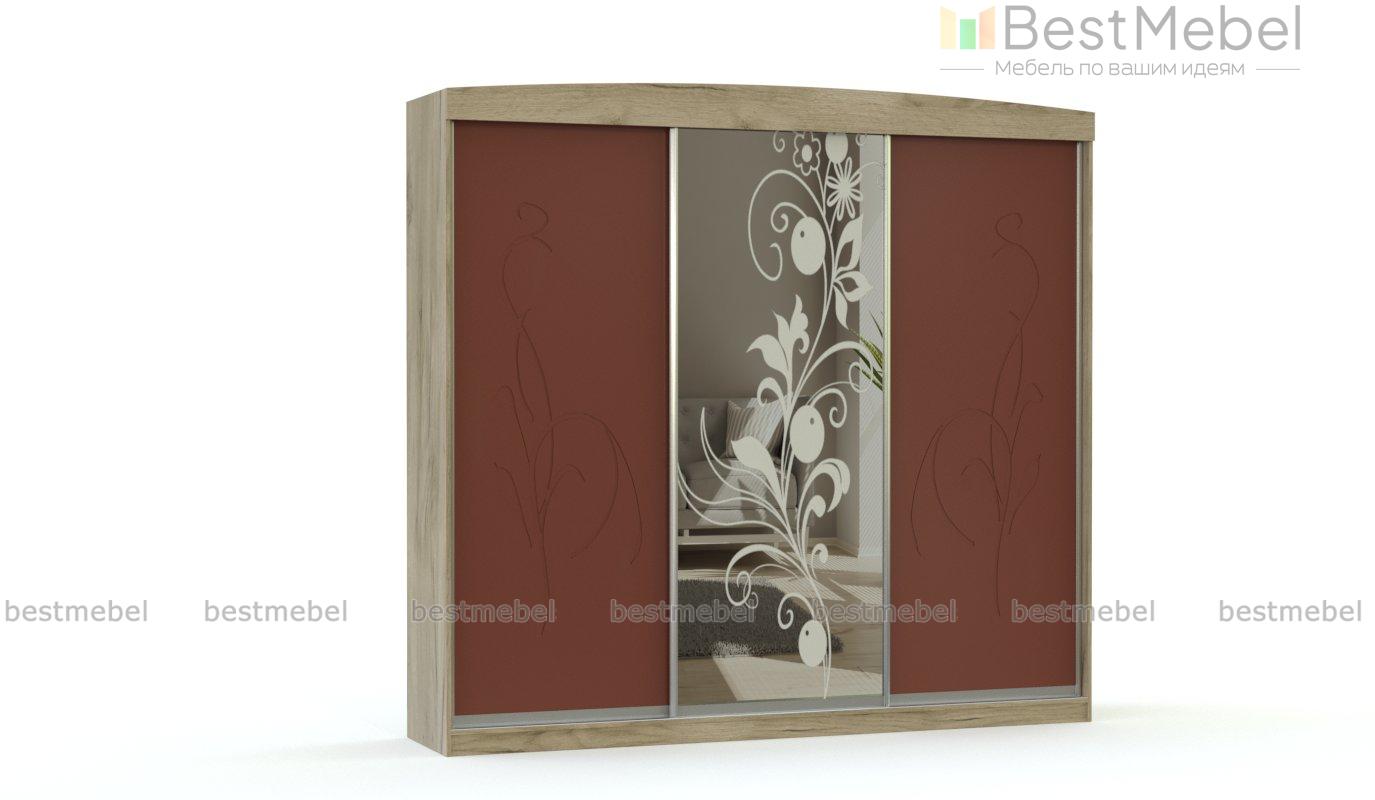 Шкаф-купе СП-513 BMS украсит интерьер современной спальни и разместит большое количество вещей. Светлый фасад шкафа декорирован изящной фрезеровкой, а на зеркальную створку нанесен фантазийный пескоструйный рисунок. Трехдверная модель с фигурным карнизом оборудована всем необходимым для хранения одежды на плечиках и в сложенном виде и экономит пространство за счет раздвижной конструкции. Купить шкаф-купе СП-513 BMS с учетом необходимых размеров вы сможете на сайте нашего интернет-магазина.
