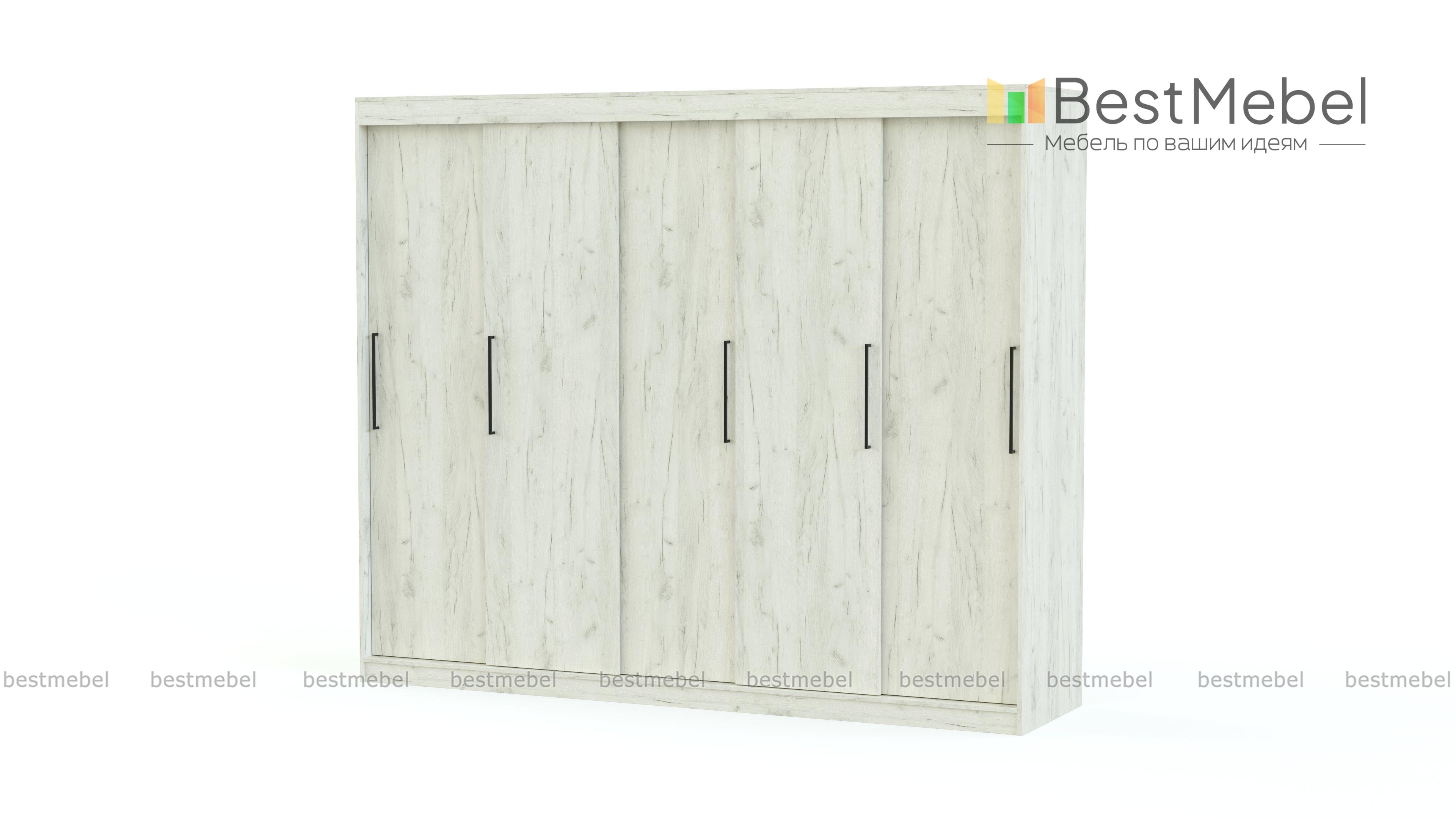 Шкаф-купе Торонто 30 BMS создан в лаконичном стиле для организованного хранения без беспорядка. Компактная благодаря раздвижной конструкции пятидверная модель выполнена из прочной ламинированной плиты базового оттенка, на фасады установлены стильные ручки-скобы. Для удобного размещения одежды на вешалках и в сложенном виде пятидверный шкаф оборудован двумя штангами и рядом бельевых полок. Купить шкаф-купе Торонто 30 BMS, изготовленный по вашим размерам, приглашаем на сайт нашего интернет-магазина.