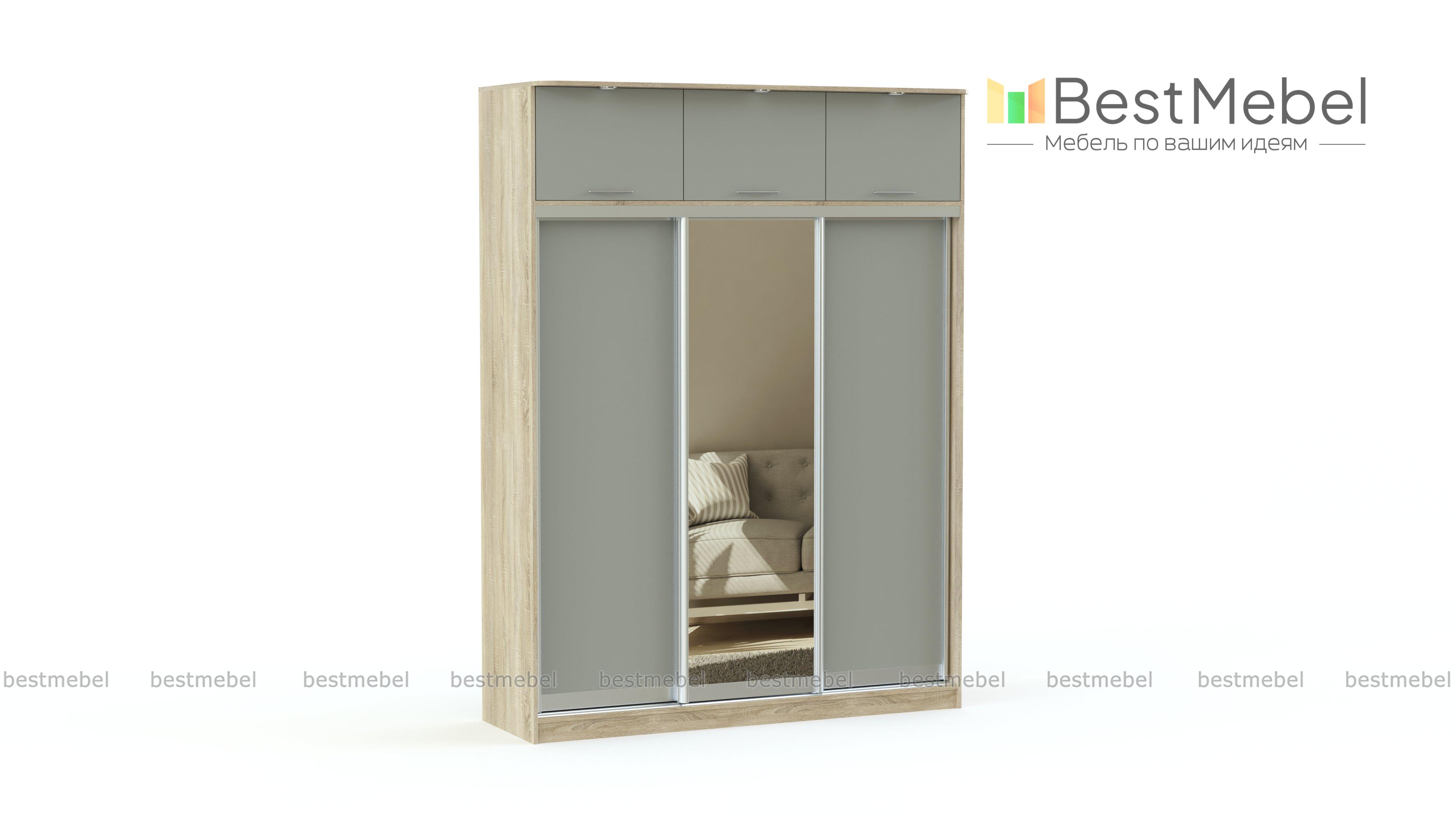 Шкаф-купе в спальню Дания 4 BMS поможет решить проблему хранения одежды и постельных принадлежностей в современном интерьере. Комбинированная модель эффективно использует пространство и гармонично впишется в меблировку небольших спален, а теплые древесные тона делают шкаф универсальным. Трехдверное раздвижное отделение с ростовым зеркалом в центральной части дополняет вместительная распашная антресоль. Купить шкаф-купе в спальню Дания 4 BMS по доступной цене приглашаем к нам в интернет-магазин.