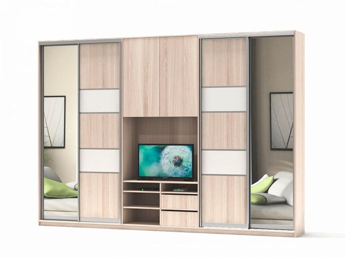 Шкаф-купе Инни BMS может стать интересным решением для гостиной, объединив вместительность купе и функциональность классической стенки. Двухдверные раздвижные отделения оборудованы полками и штангами для белья и одежды, а центральная секция с тумбой и распашным шкафчиком разместит ТВ, дополнительную аппаратуру и разнообразные мелочи. Теплые древесные тона и зеркала в полный рост сделают интерьер уютным и комфортным. Купить шкаф-купе Инни BMS по демократичной цене вы всегда сможете в нашем интернет-магазине, подобрав нужные параметры.