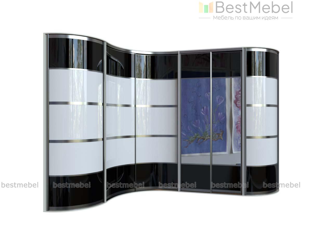 Шкаф радиусный Лео 85 BMS с фасадами волнообразной формы станет не только частью системы хранения, но и элементом дизайна спальни или гостиной. Футуристичный вид шкафу придает сочетание черного глянца с контрастными светлыми вставками, профилем в оттенке серебро и ростовым зеркалом. Шкаф отличается великолепной вместимостью и поможет с комфортом разместить сезонные вещи. Купить недорого Шкаф радиусный Лео 85 BMS, подобрав оптимальный вариант внутреннего наполнения, приглашаем в наш интернет-магазин.