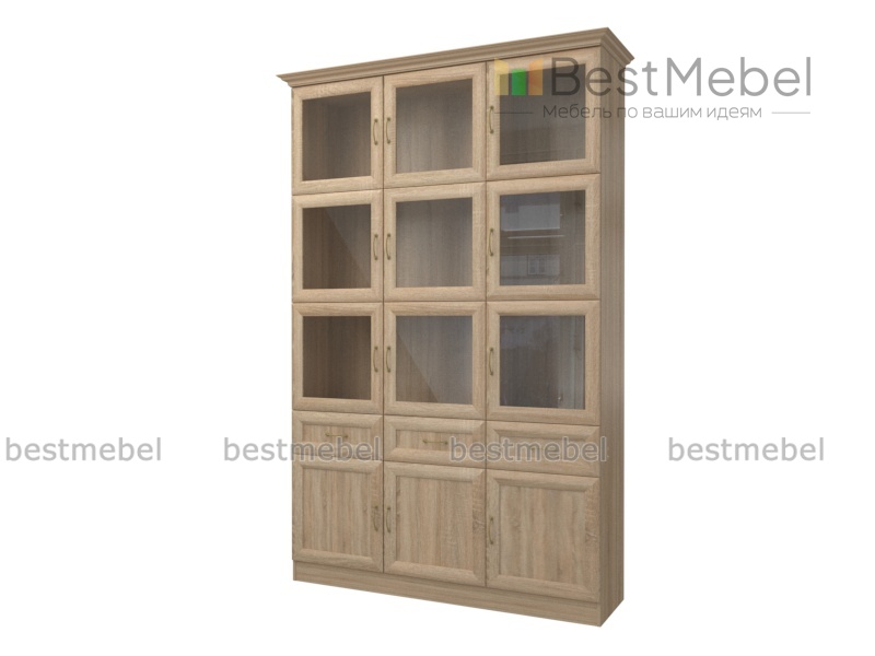 Библиотека Классик 2 BMS отличается особенной вместительностью за счет высоты. Практичная комбинированная конструкция, включающая застекленные полки, глухие распашные отделения и выдвижные ящики, позволит максимально удобно разместить книги, газеты, журналы и разнообразные бытовые мелочи. Выполненный в древесных тонах, шкаф с рамочными фасадами, ручками-скобами под бронзу и карнизом гармонично дополнит классические интерьеры. Купить библиотеку Классик 2 BMS, подобрав оптимальный вариант расцветки, приглашаем к нам в интернет-магазин.
