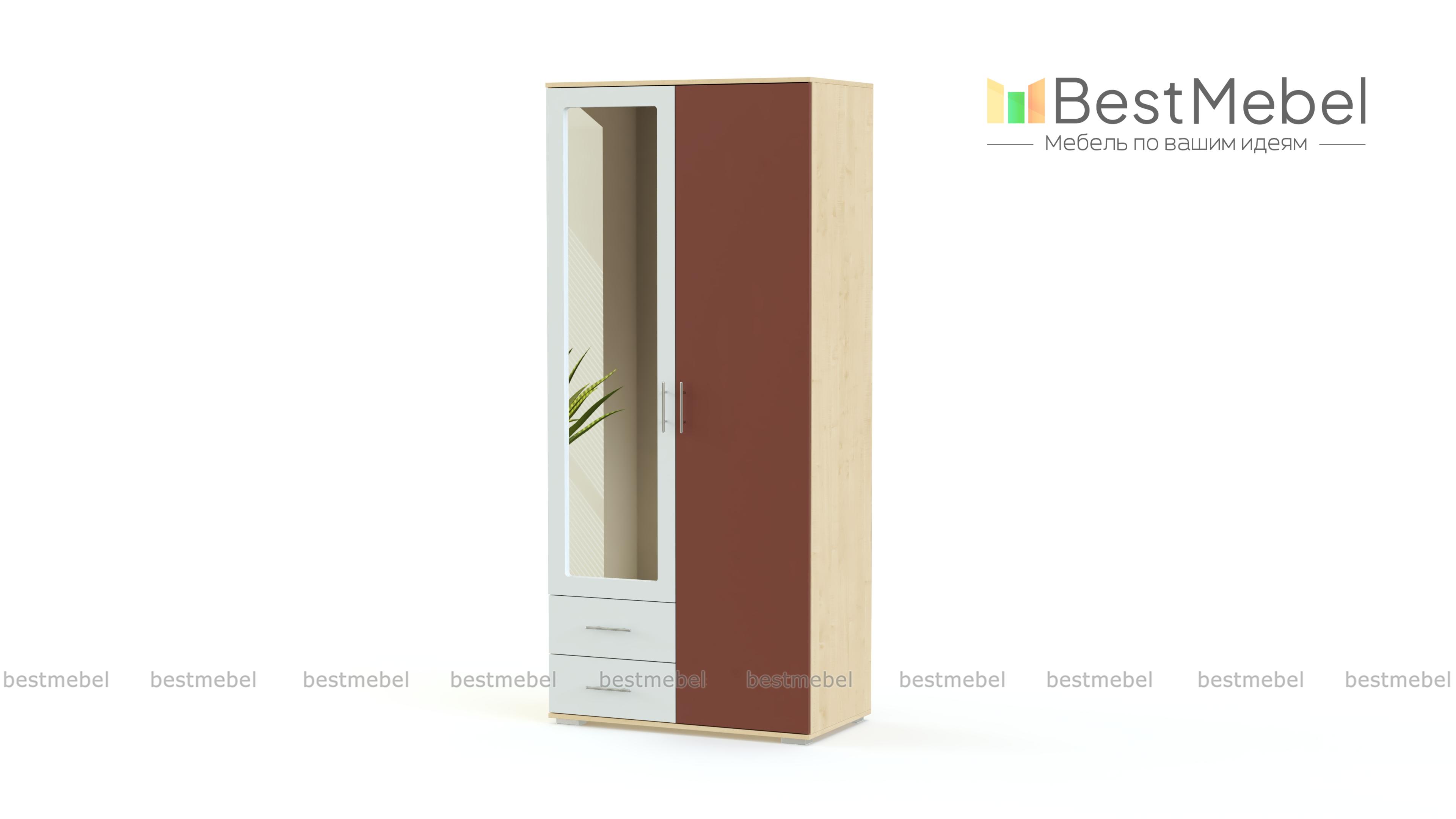 Шкаф распашной Глянец 8 BMS с акцентной контрастной дверцей выигрышно смотрится в современном интерьере. Двухдверная модель с платяной штангой дополнена парой выдвижных ящиков для хранения постельного белья, аксессуаров или мелкого трикотажа. Глянцевый фасад скомбинирован с зеркальной дверцей, визуально расширяя пространство комнаты. Купить шкаф распашной Глянец 8 BMS с учетом оптимальных размеров вы сможете недорого в нашем интернет-магазине.