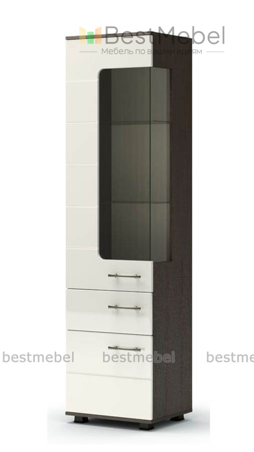 Пенал САМБА большой BMS станет идеальным дополнением гарнитура современной гостиной или самостоятельным предметом интерьера. Высокий пенал выполнен в контрастном сочетании корпуса темных древесных тонов и белого глянца фасадов. Верхняя часть представляет собой витрину со стеклянными полками, нижняя – распашное отделение с полкой. В центре располагается удобный выдвижной ящик для мелких вещей. Купить пенал САМБА большой BMS по доступной цене вы сможете в нашем интернет-магазине.