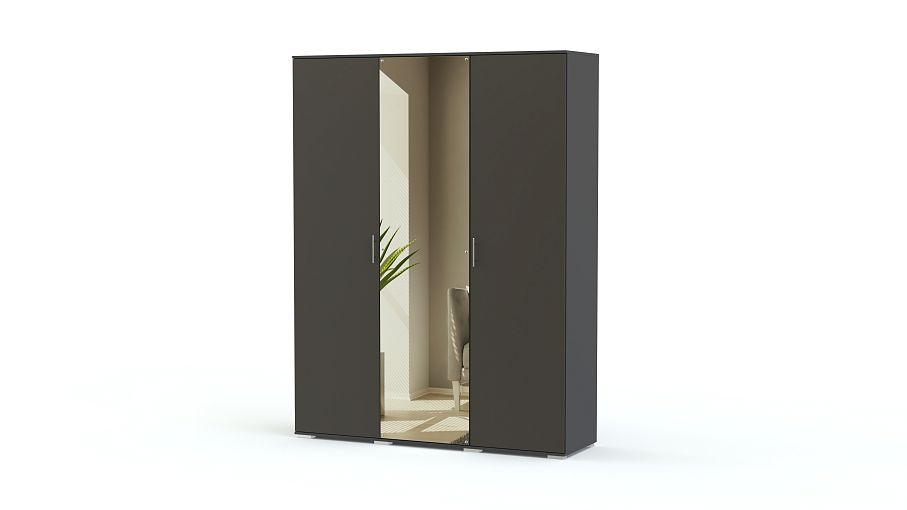 Распашной шкаф Альма 11 BMS изготовлен из прочной и износостойкой ЛДСП, которая продлит срок службы и сохранит эстетичный вид изделия на долгие годы. Исполнение в актуальных темных тонах графитового оттенка в сочетании с зеркалом правильной геометричной формы позволит вписать модель в любой стиль интерьера, а просторный платяной отсек и вместительное отделение с полками порадуют вас своей функциональностью. Купить распашной шкаф Альма 11 BMS по низкой цене приглашаем на сайт нашего интернет-магазина.