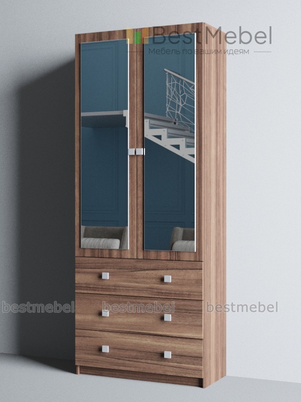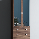 Распашной шкаф Бостон 11 BMS – компактная модель, которая совмещает функции комода и бельевого шкафа. Двухдверная конструкция не займет много места благодаря небольшой глубине и станет отличным выбором для малогабаритных помещений. В верхней части располагается распашное отделение со штангой и полкой, в нижней – три широких выдвижных ящика. В оформлении фасадов сочетаются нейтральные древесные тона и зеркальные поверхности. Купить распашной шкаф Бостон 11 BMS недорого приглашаем в наш интернет-магазин.
